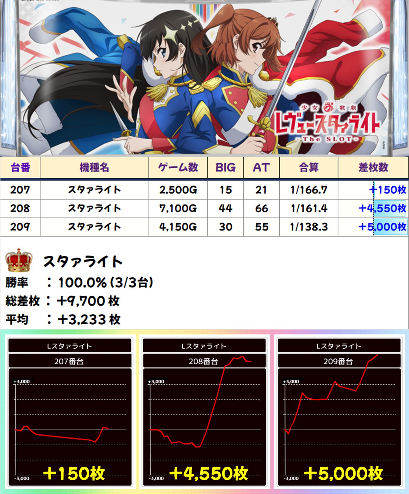 全台系濃厚:レヴュースタァライト(3/3台+) 【平均+3,233枚】