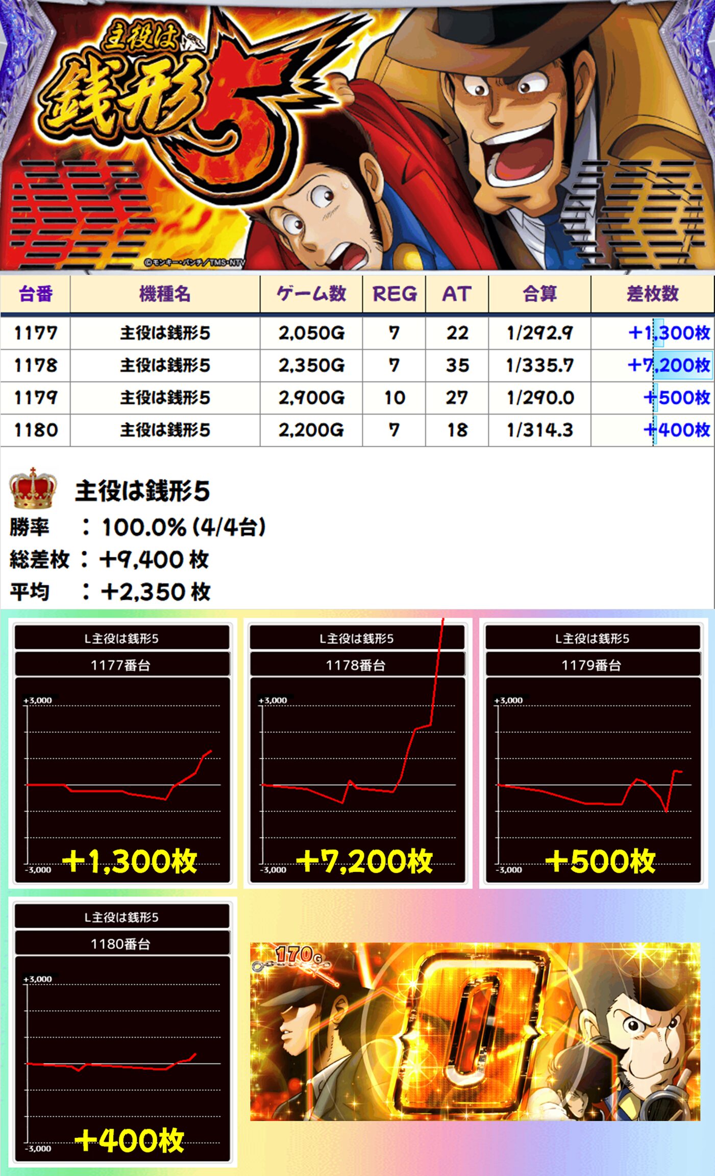 全台系濃厚:主役は銭形5(4/4台+) 【平均+2,350枚】
