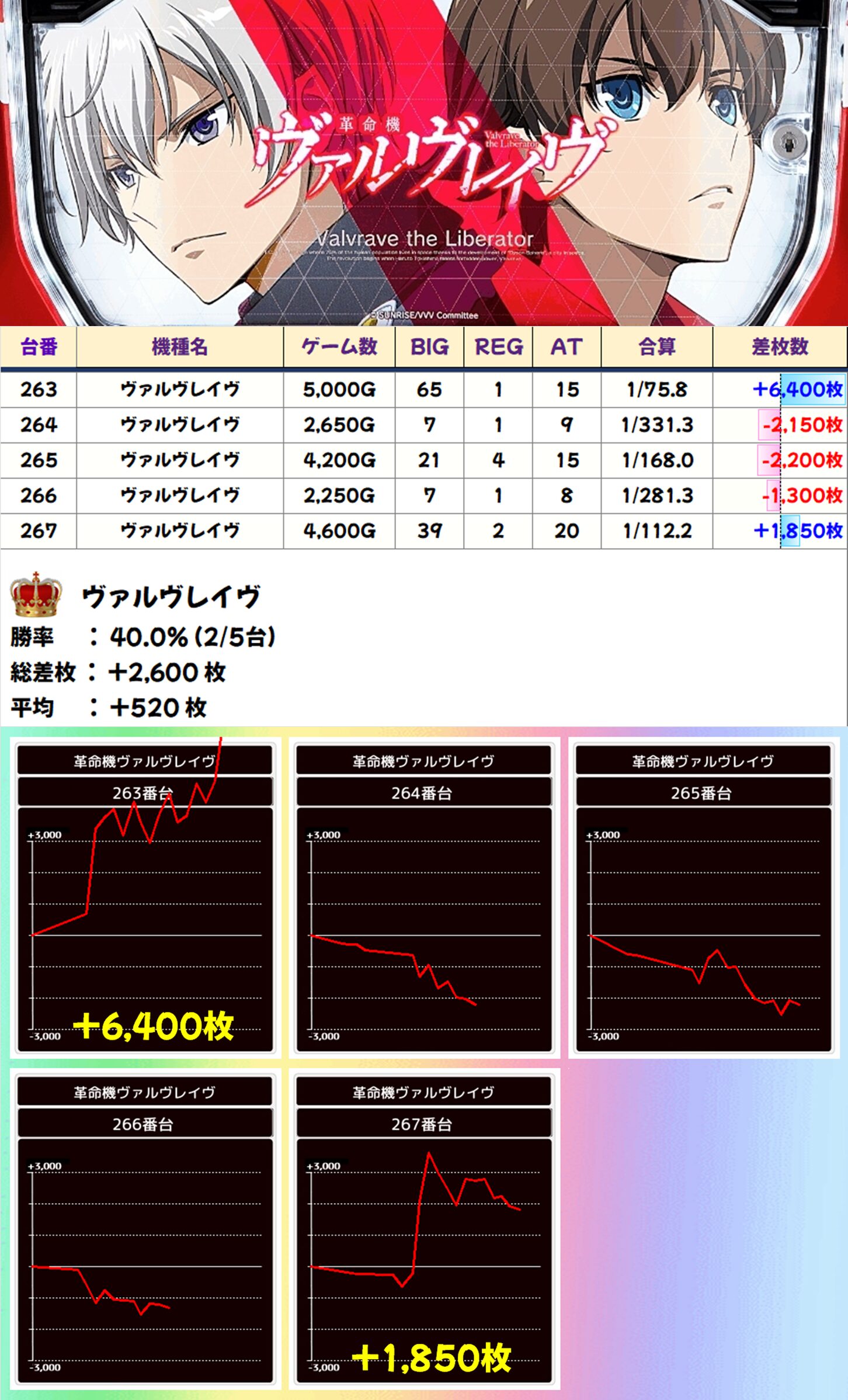 全台系濃厚:ヴァルヴレイヴ(2/5台+) 【平均+520枚】
