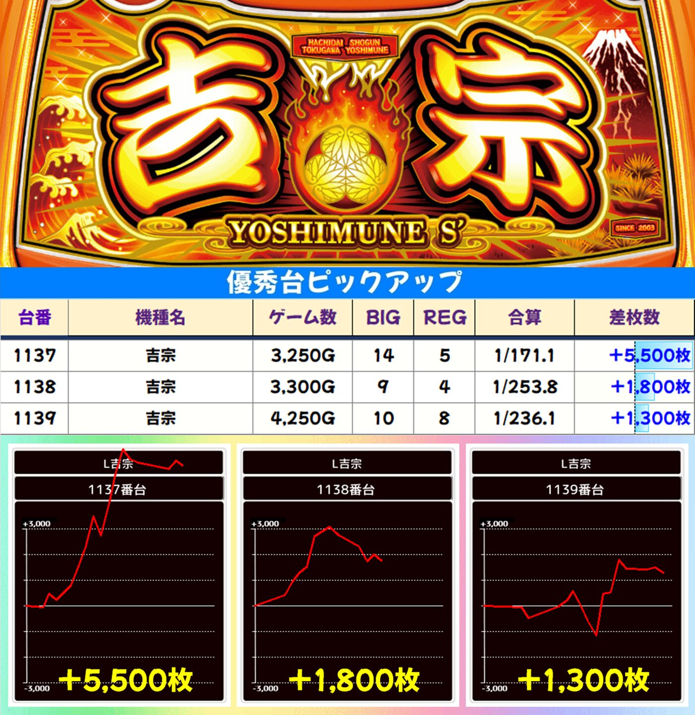 高配分:吉宗(3/4台+) 【平均+1,875枚】