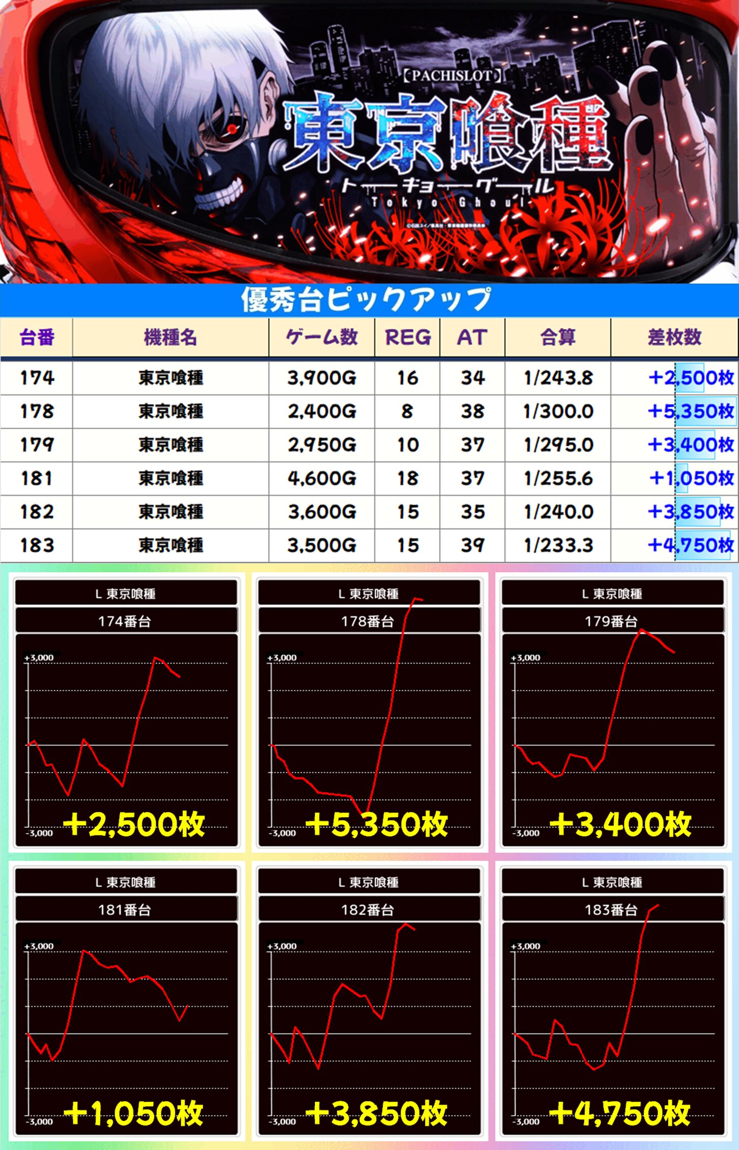高配分:東京喰種(6/12台+) 【平均+1,104枚】