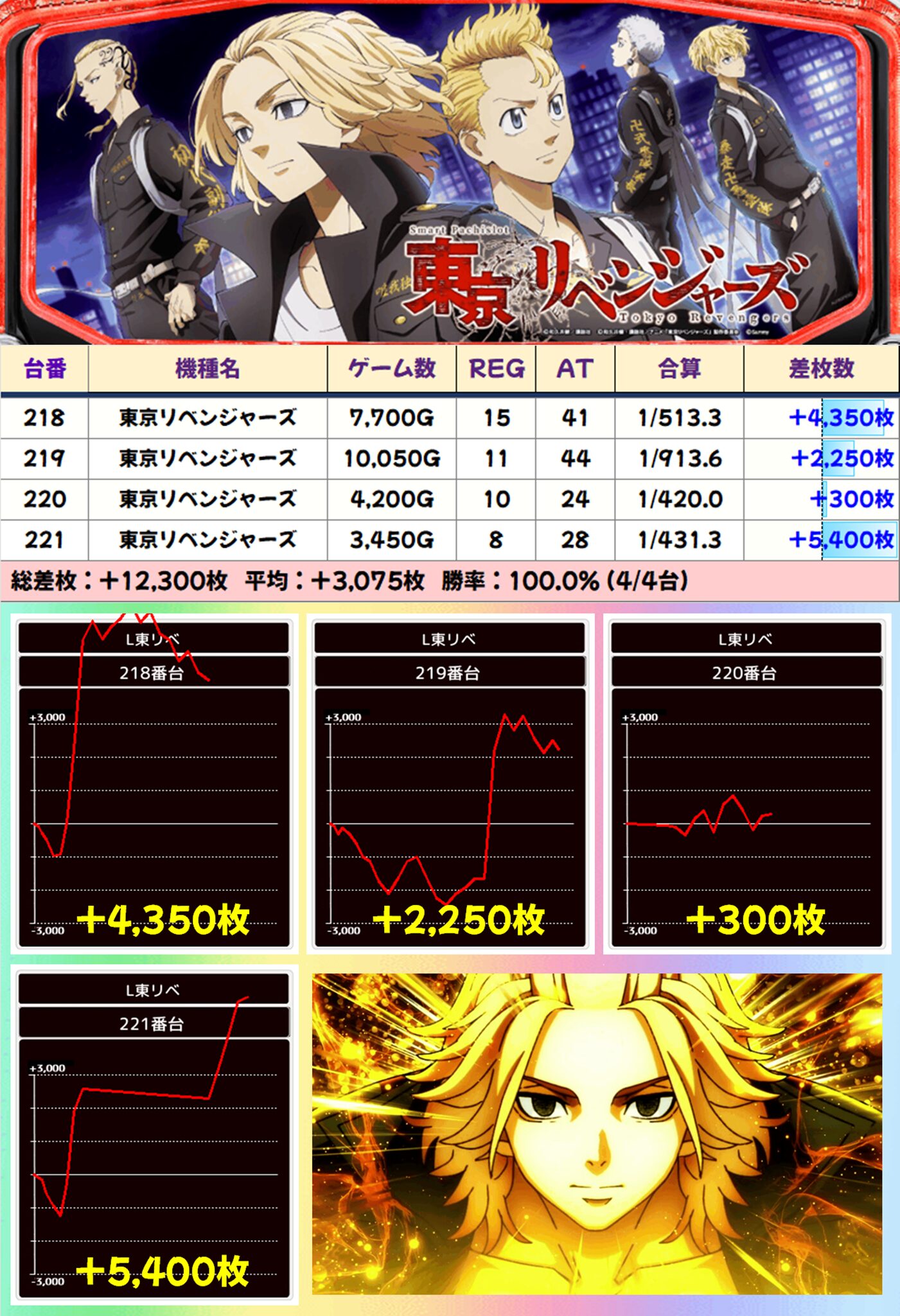 4台並び:東京リベンジャーズ(4/4台+) 【平均+3,075枚】