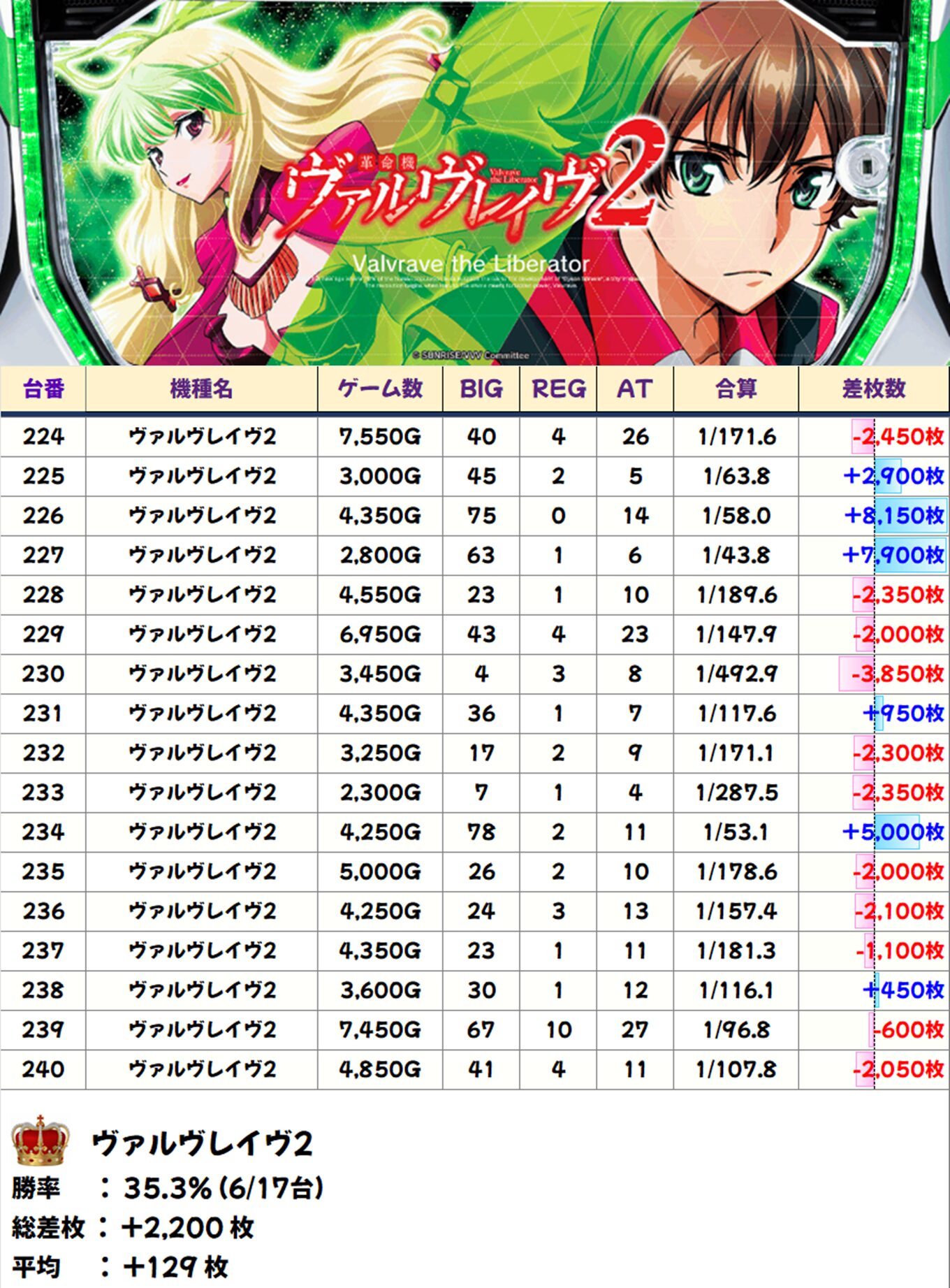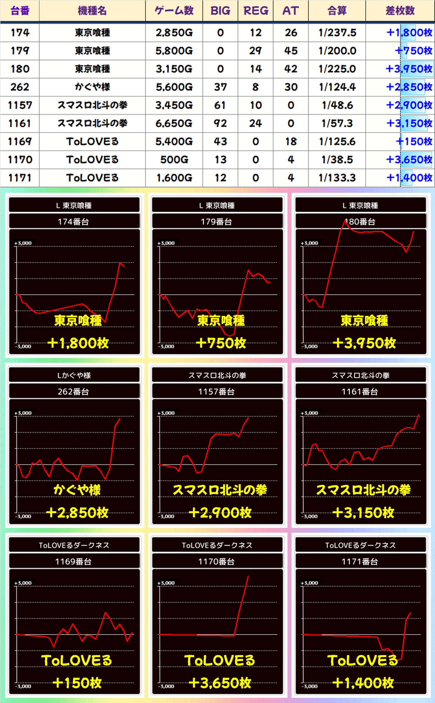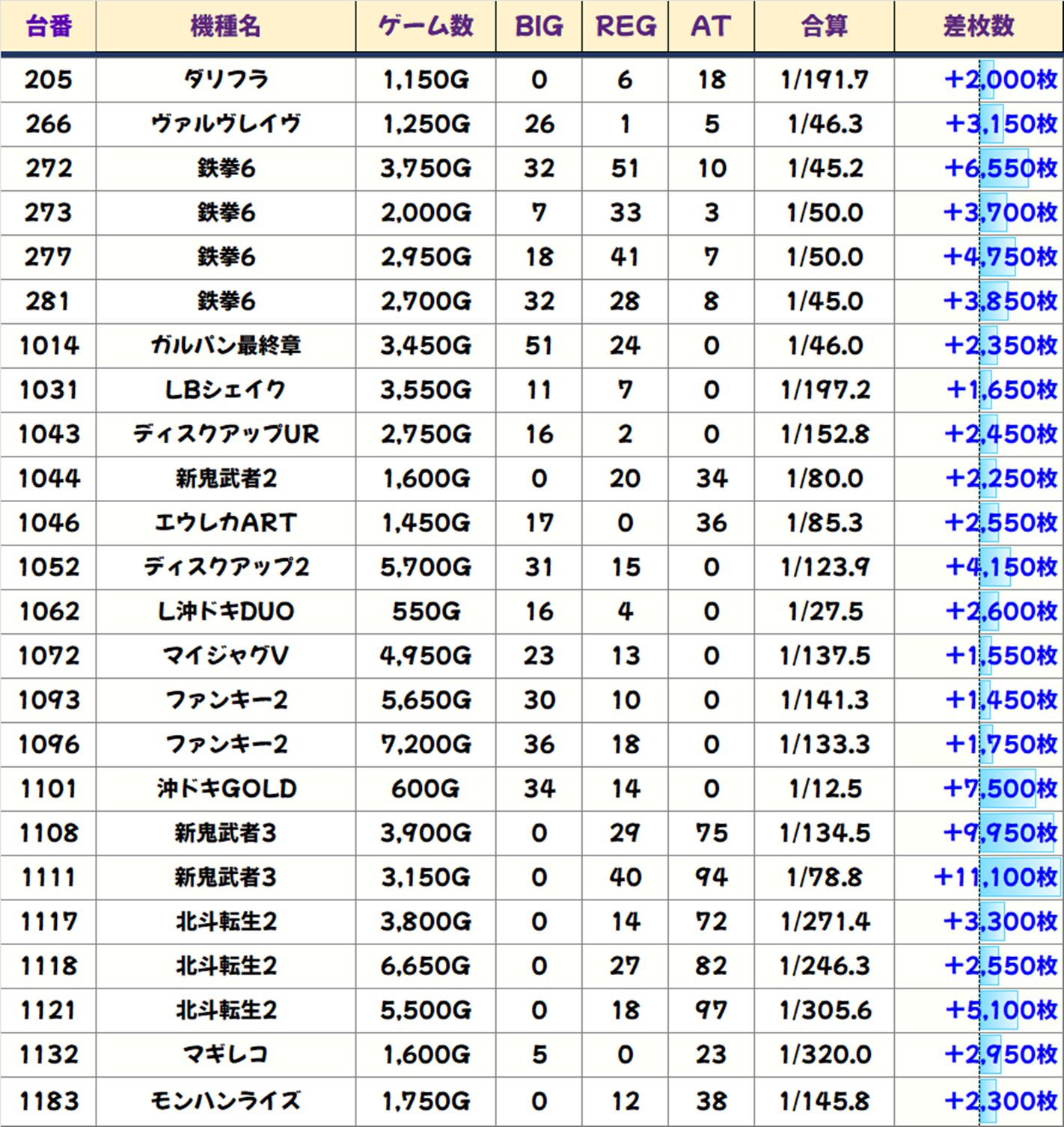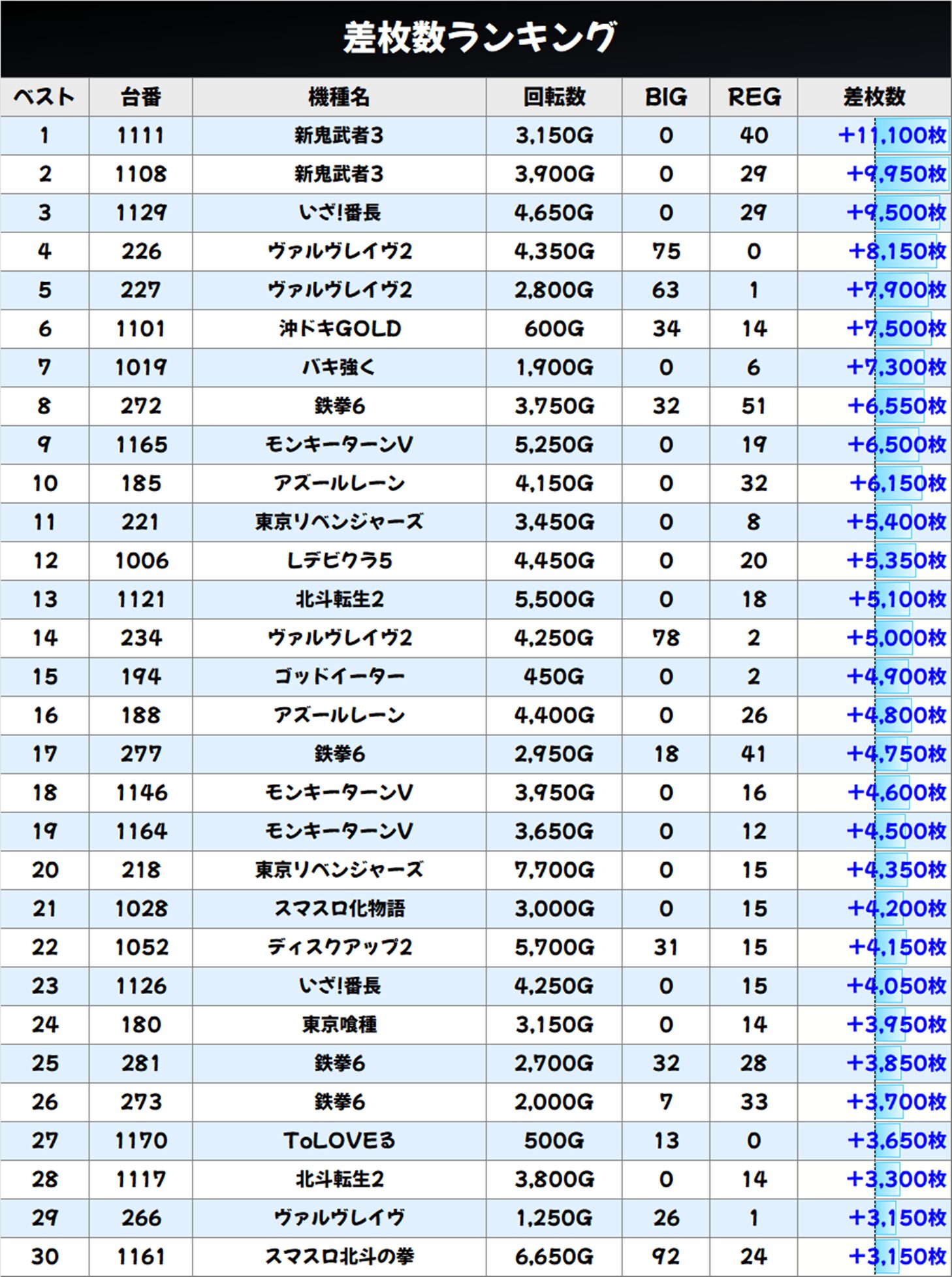 差枚数ランキング&全体データ