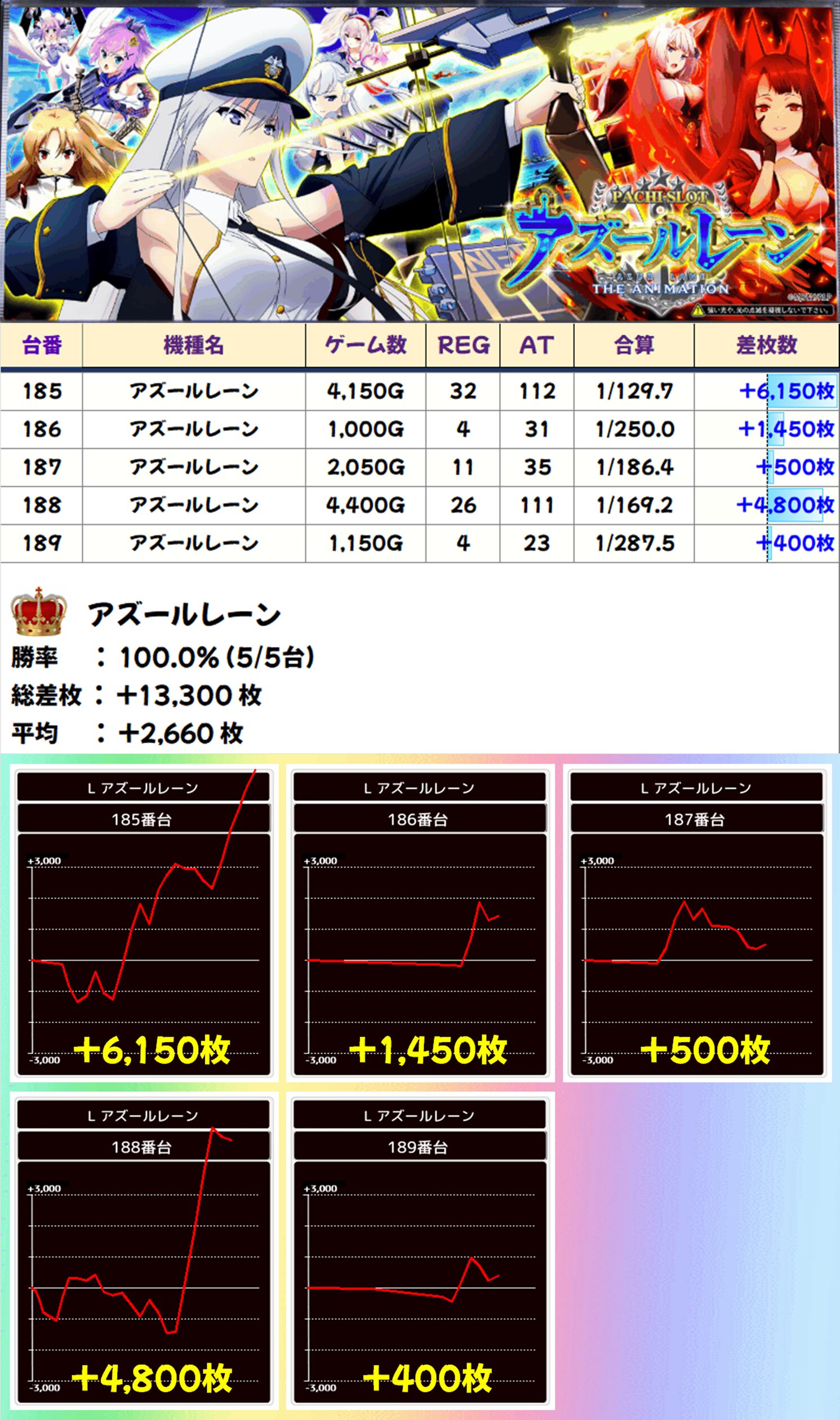 全台系濃厚:アズールレーン(5/5台+) 【平均+2,660枚】