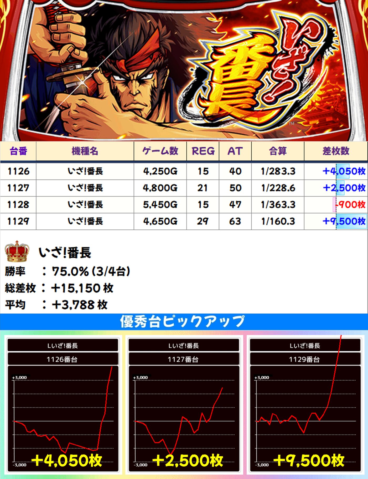 高配分:いざ!番長(3/4台+) 【平均+3,788枚】