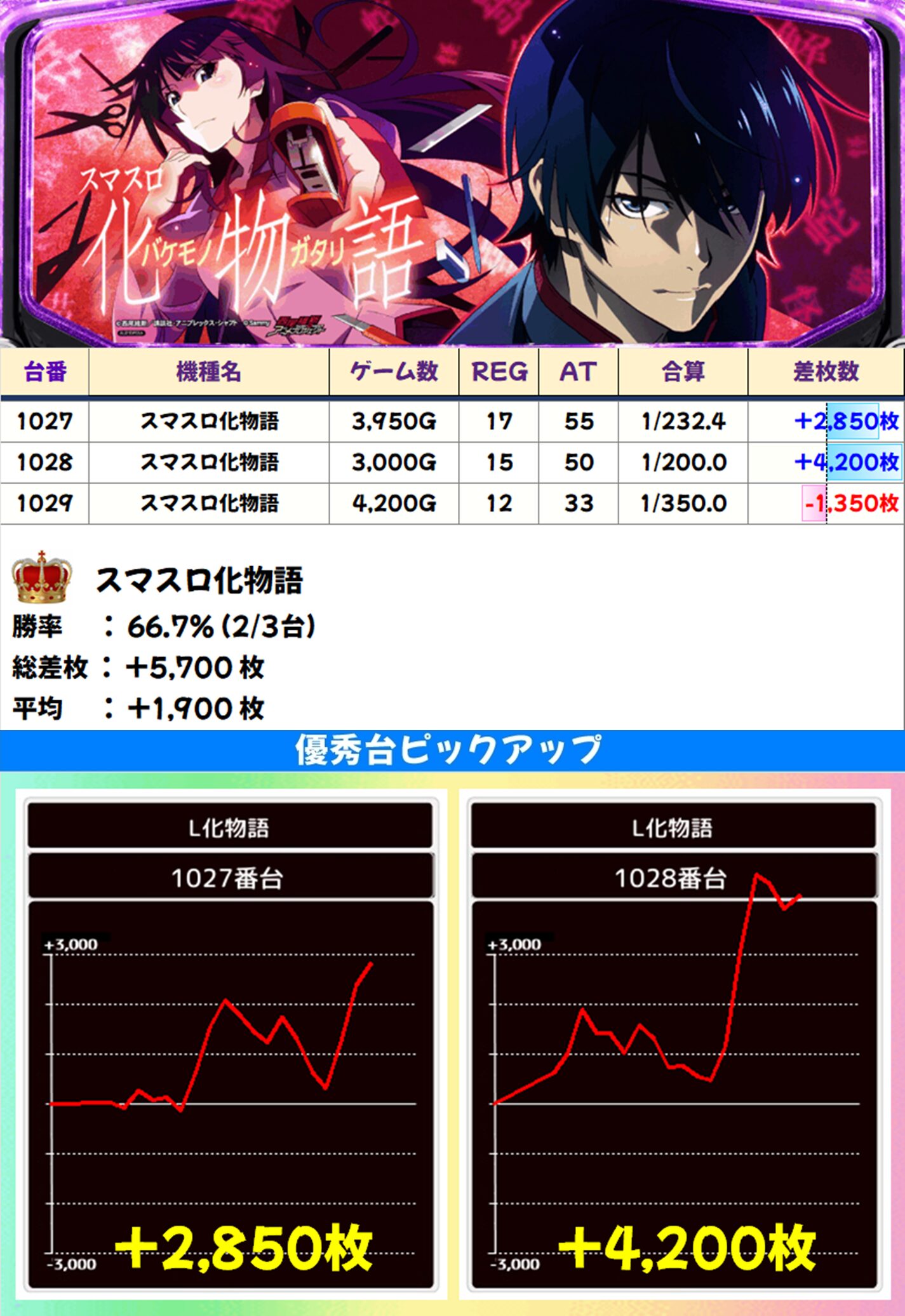 高配分:スマスロ化物語(2/3台+) 【平均+1,900枚】