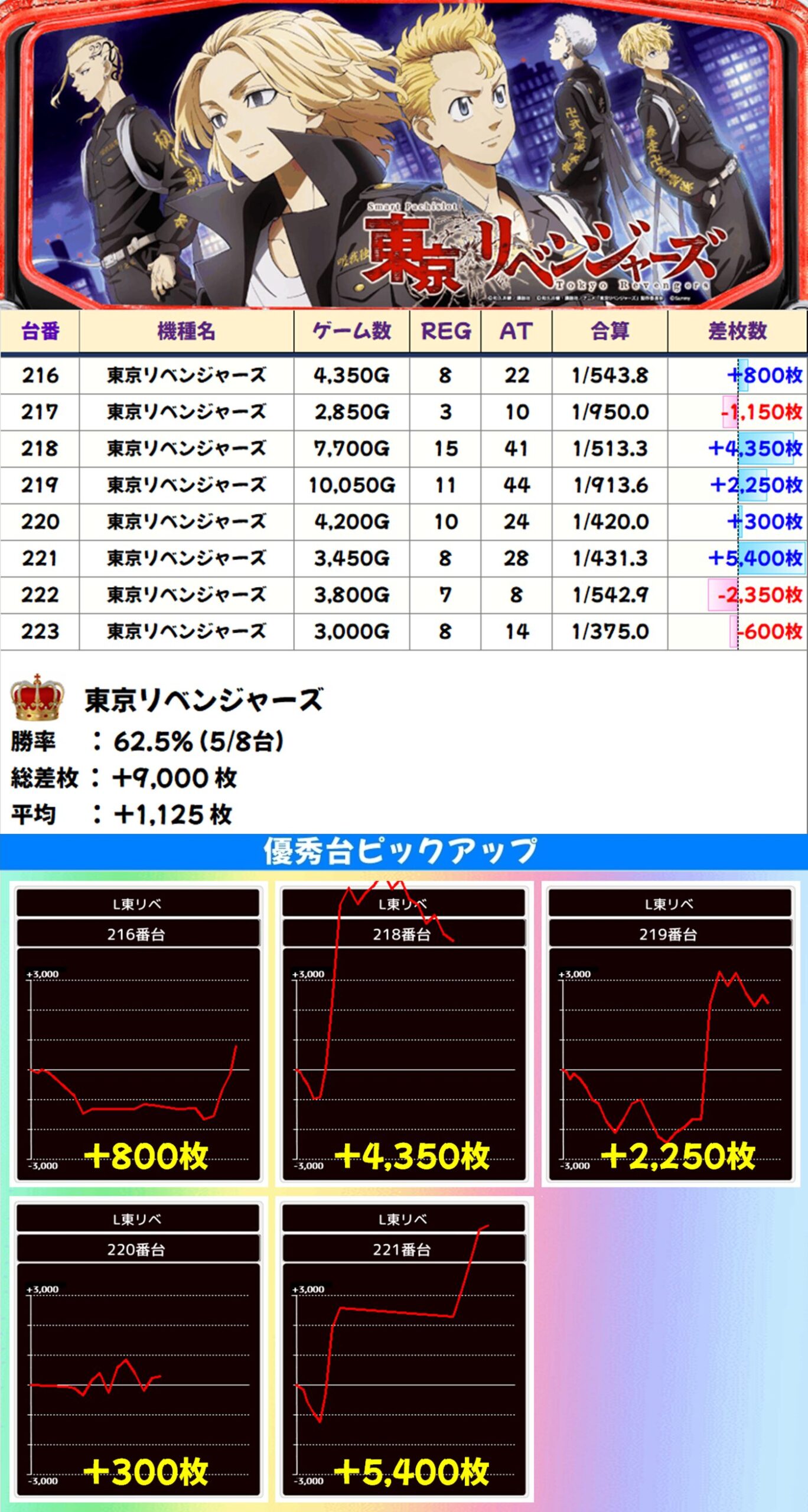 高配分:東京リベンジャーズ(5/8台+) 【平均+1,125枚】
