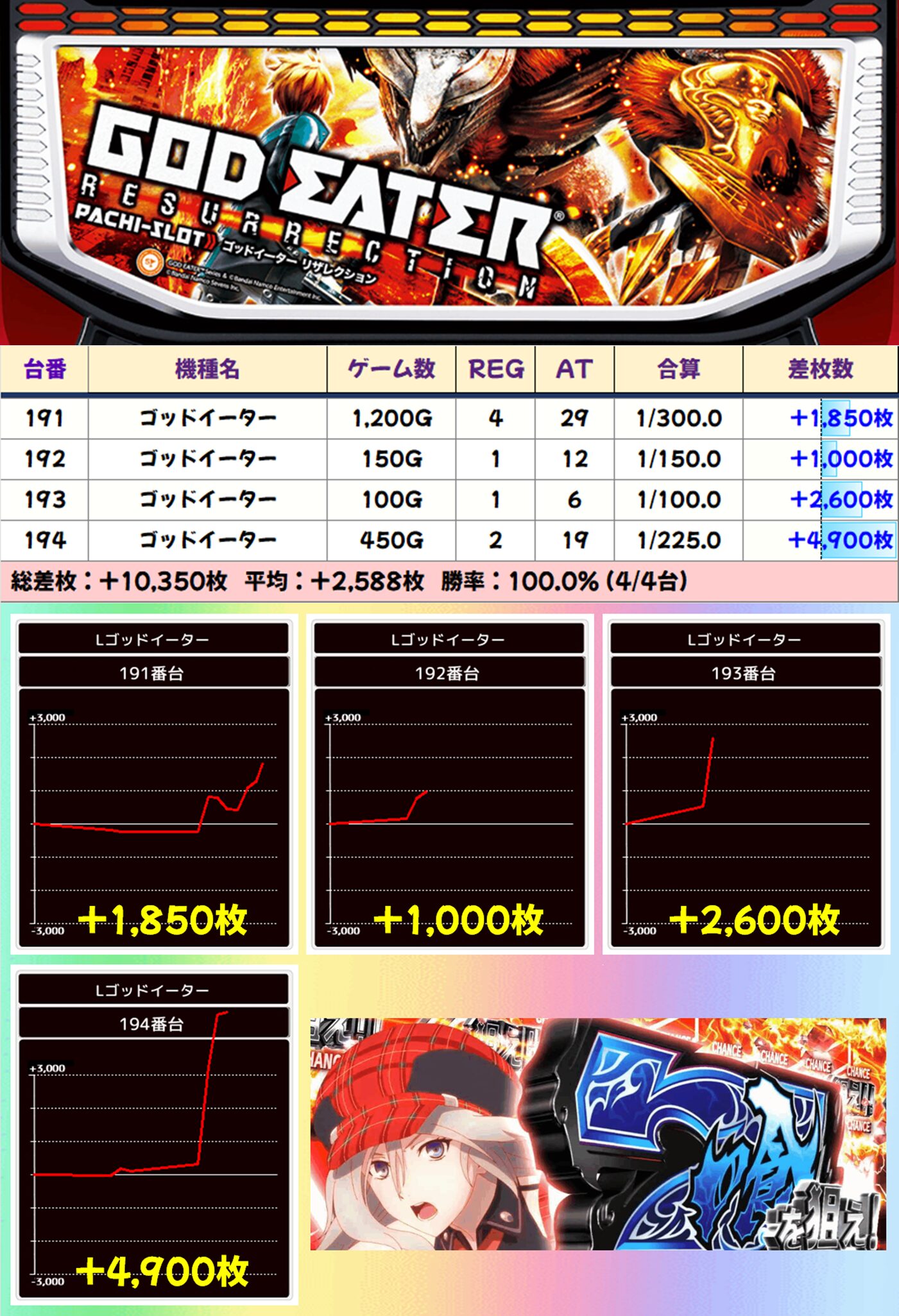 4台並び:ゴッドイーター(4/4台+) 【平均+2,588枚】