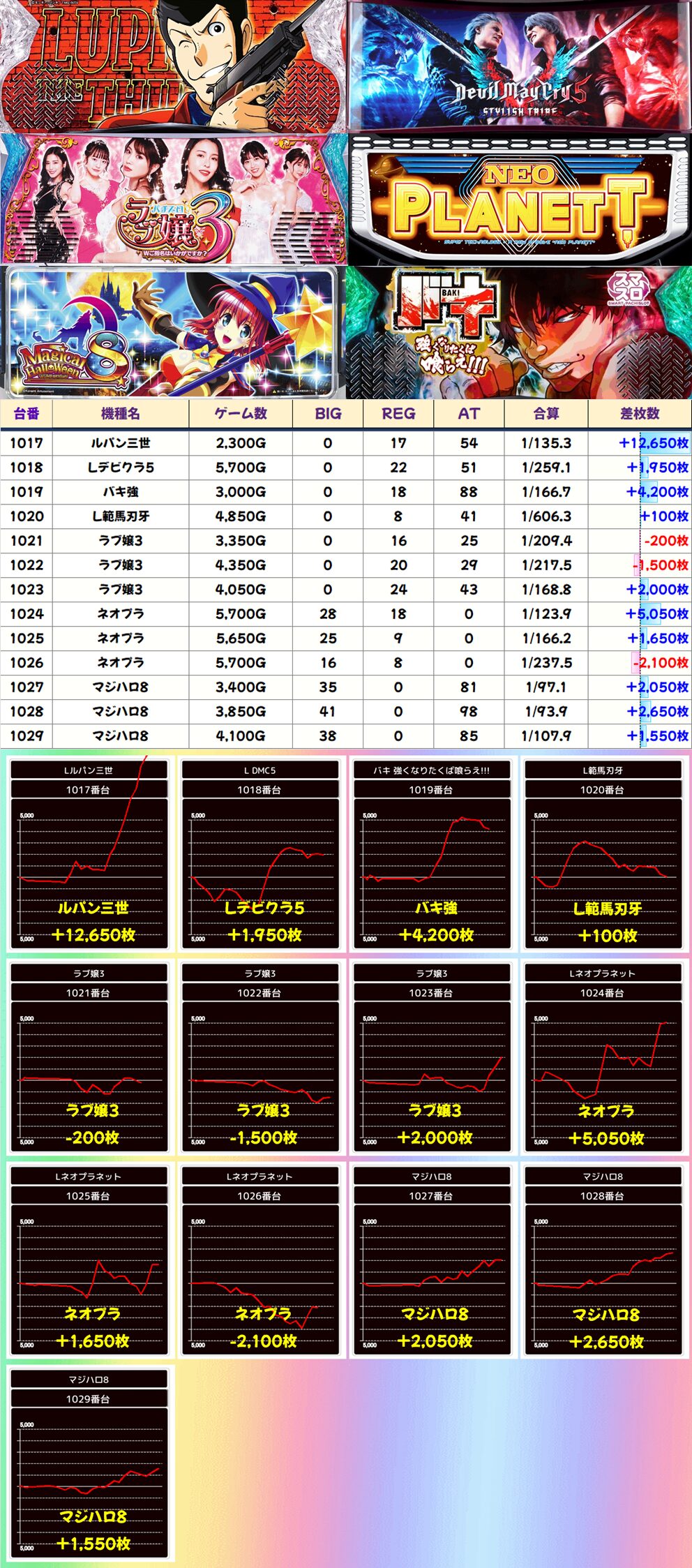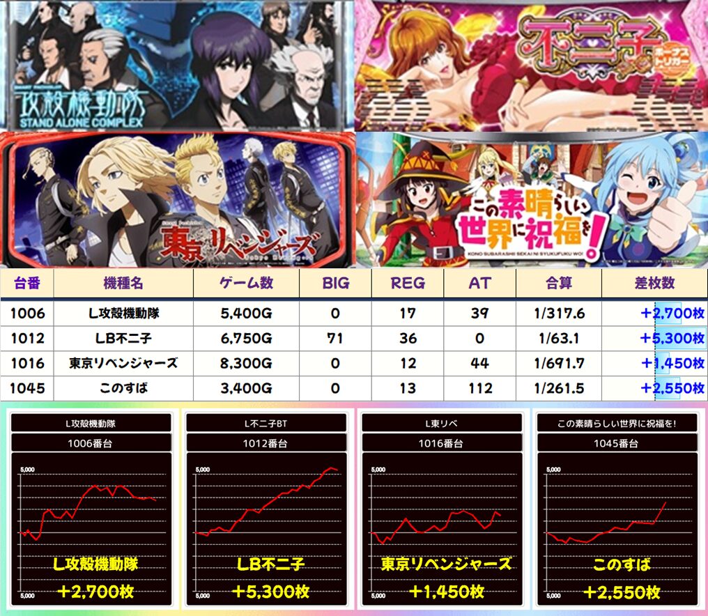 【ルパン三世】は万枚overの大量出玉を獲得。全体的にかなり強い結果となりましたね!