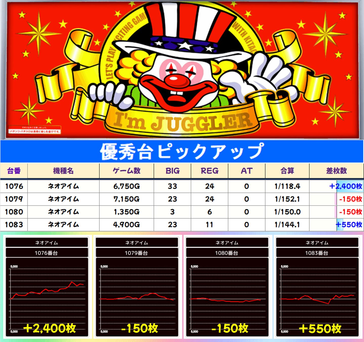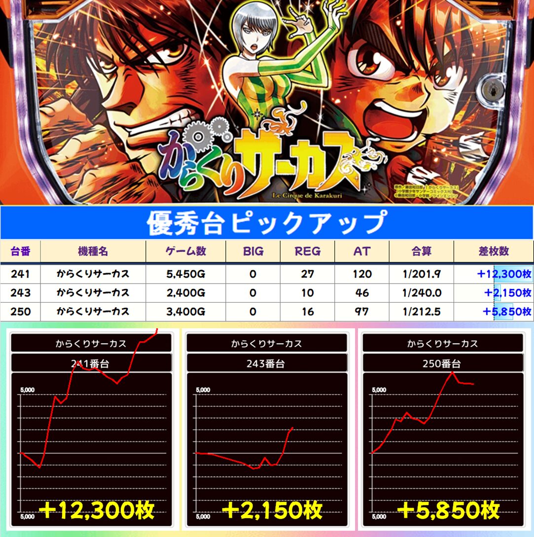 こちらも安定した好結果、からくりからは万枚overも!