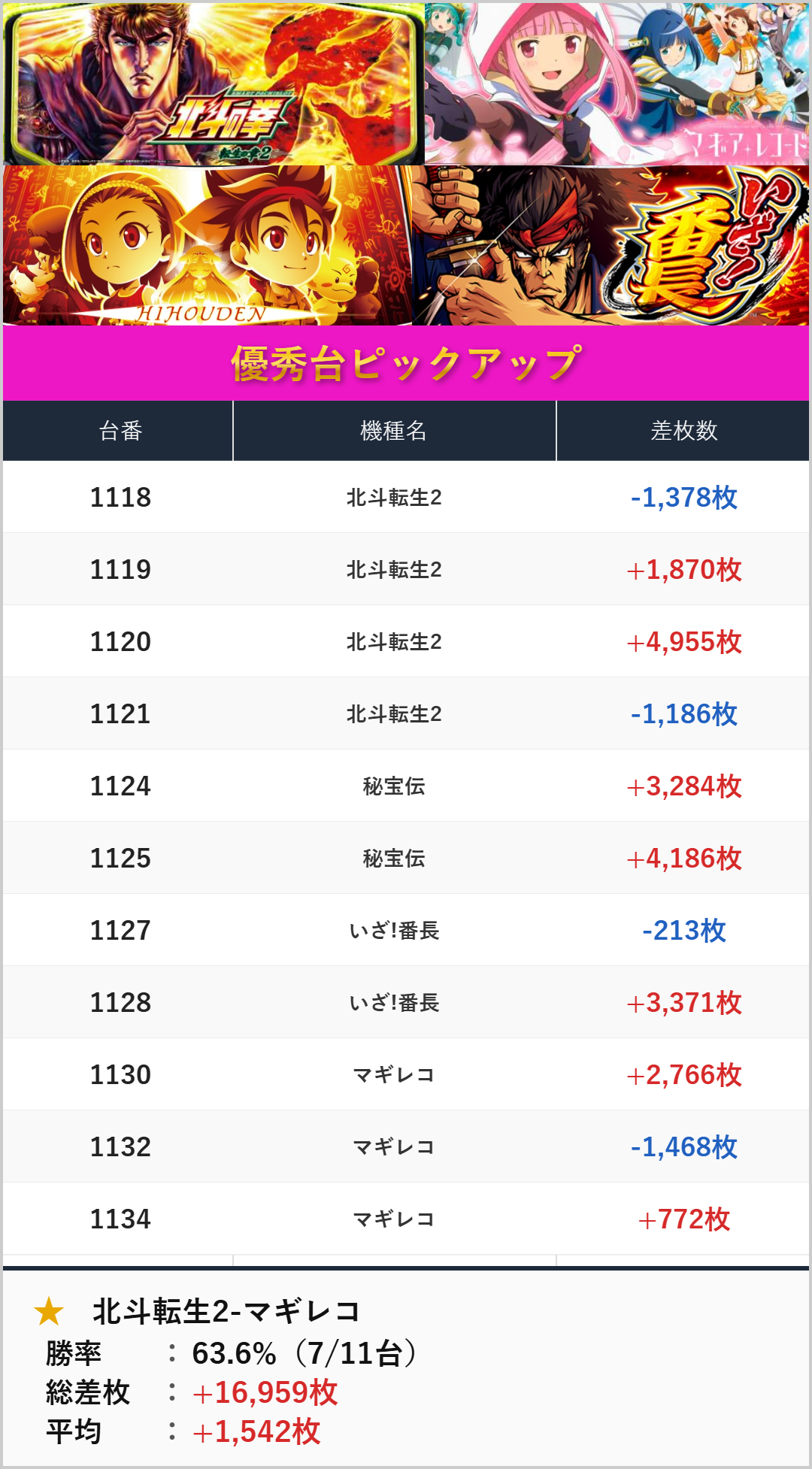 1/2列&1/2機種:北斗転生2-マギレコ(1118-1134番台)【平均+1,542枚】