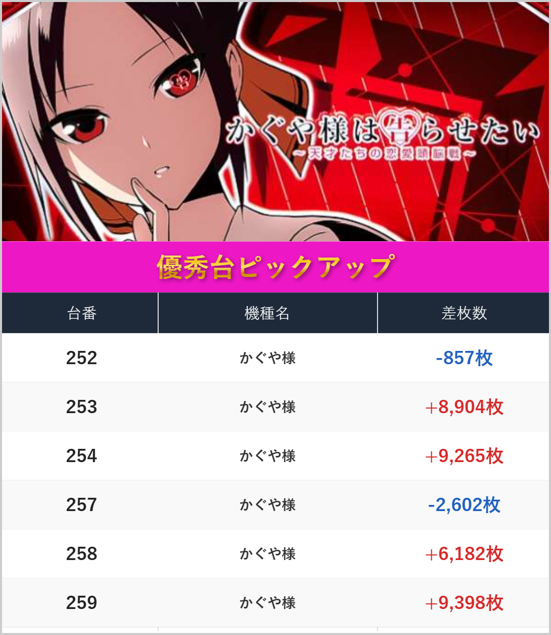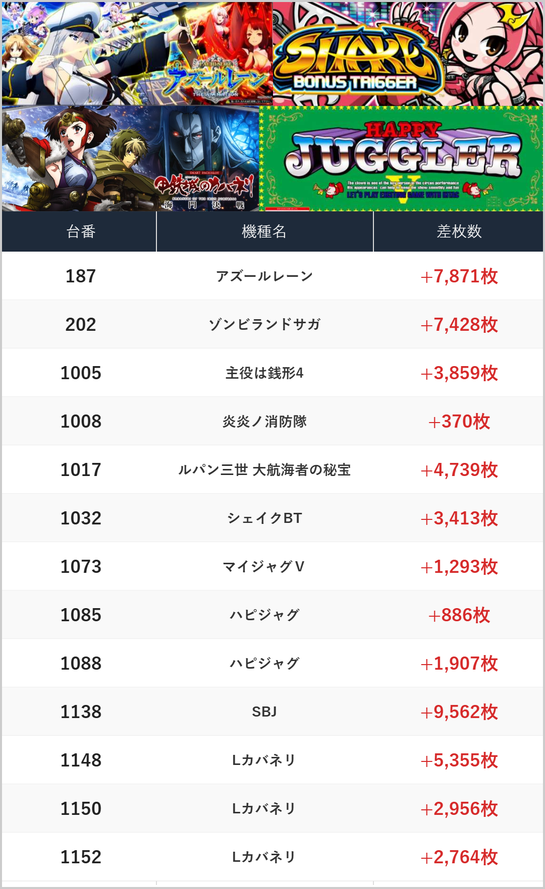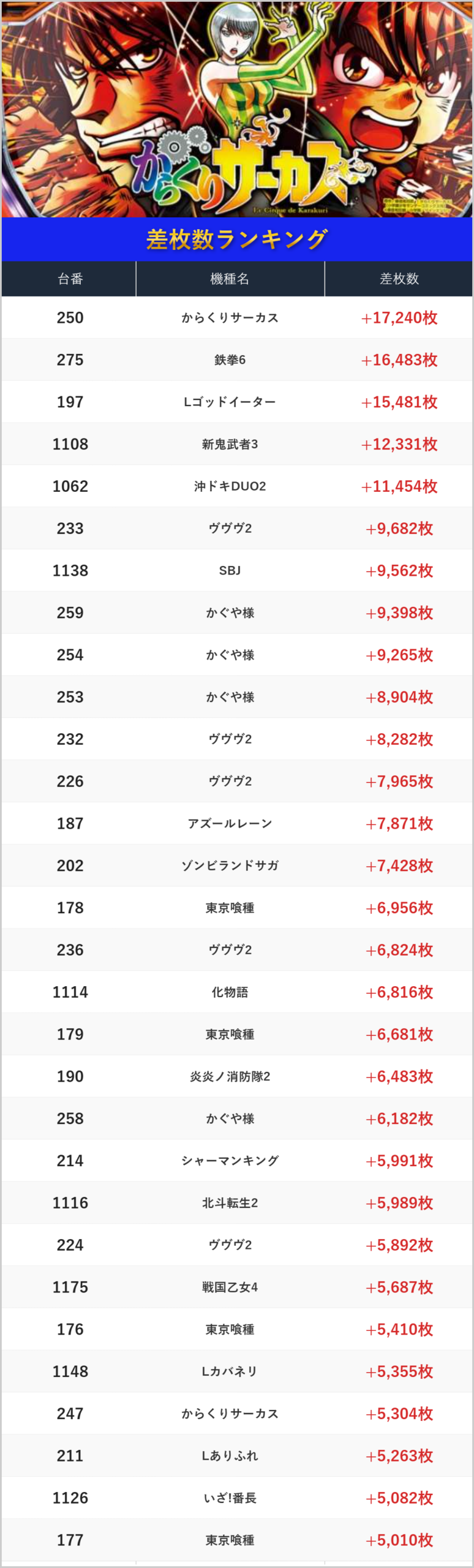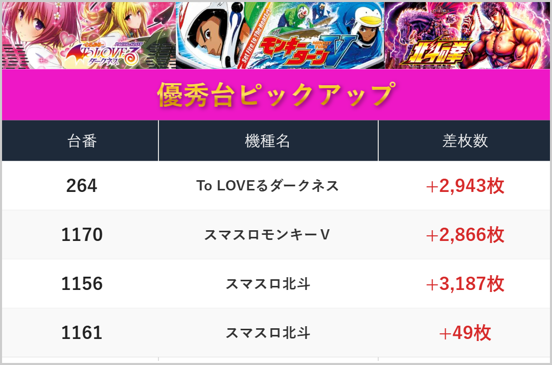 差枚数ランキング!