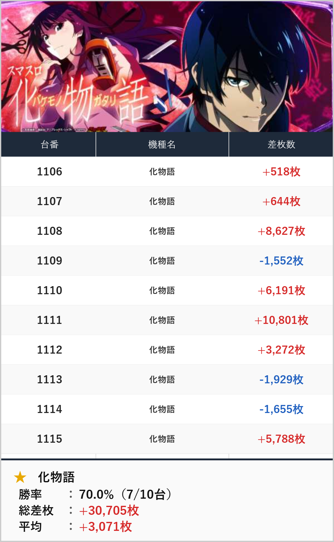 全台系&列全:化物語(10台)【平均+3,071枚】