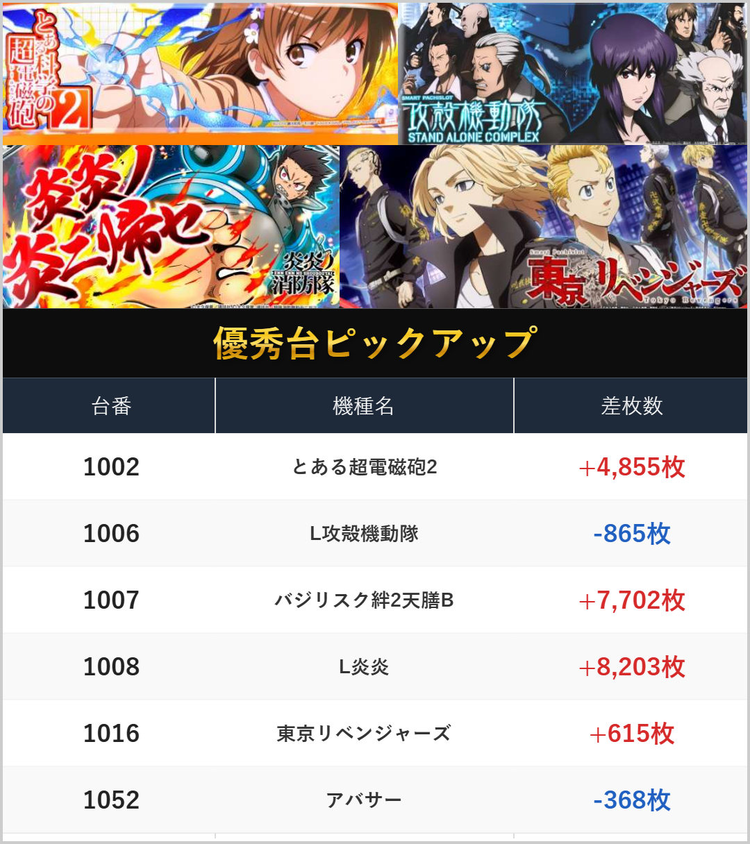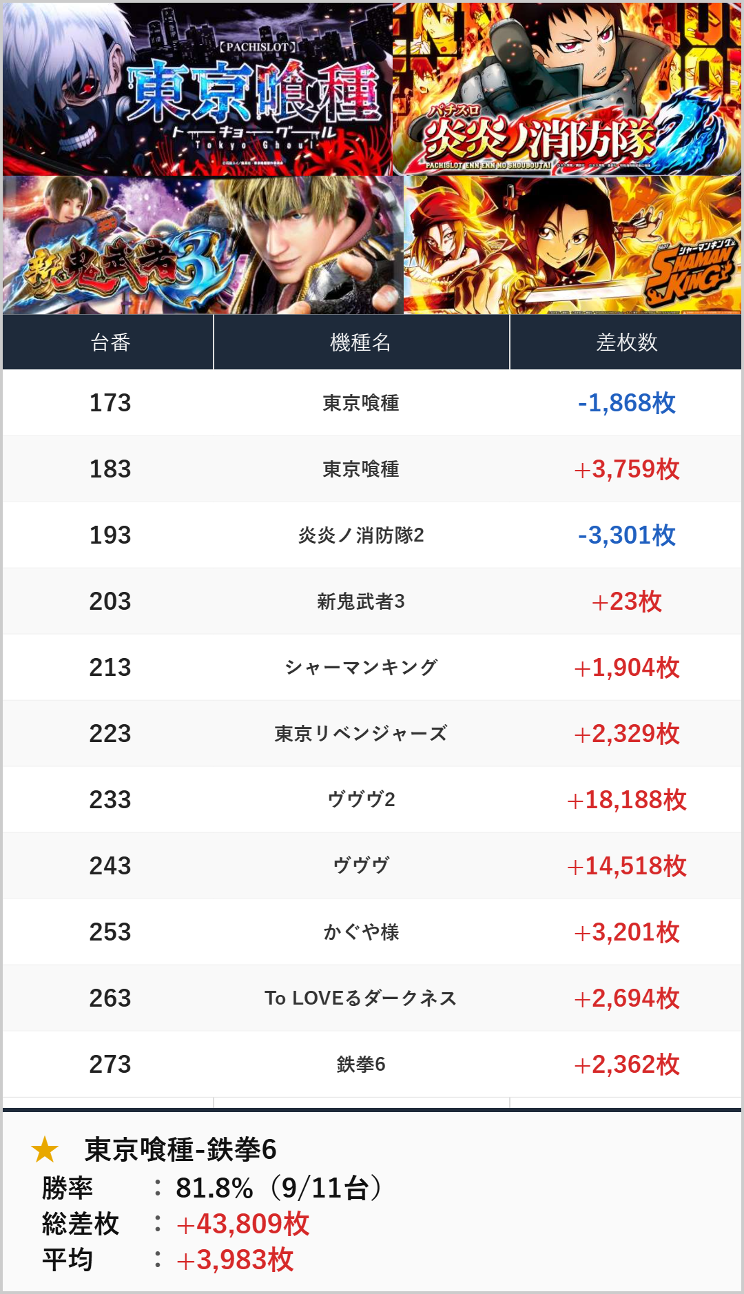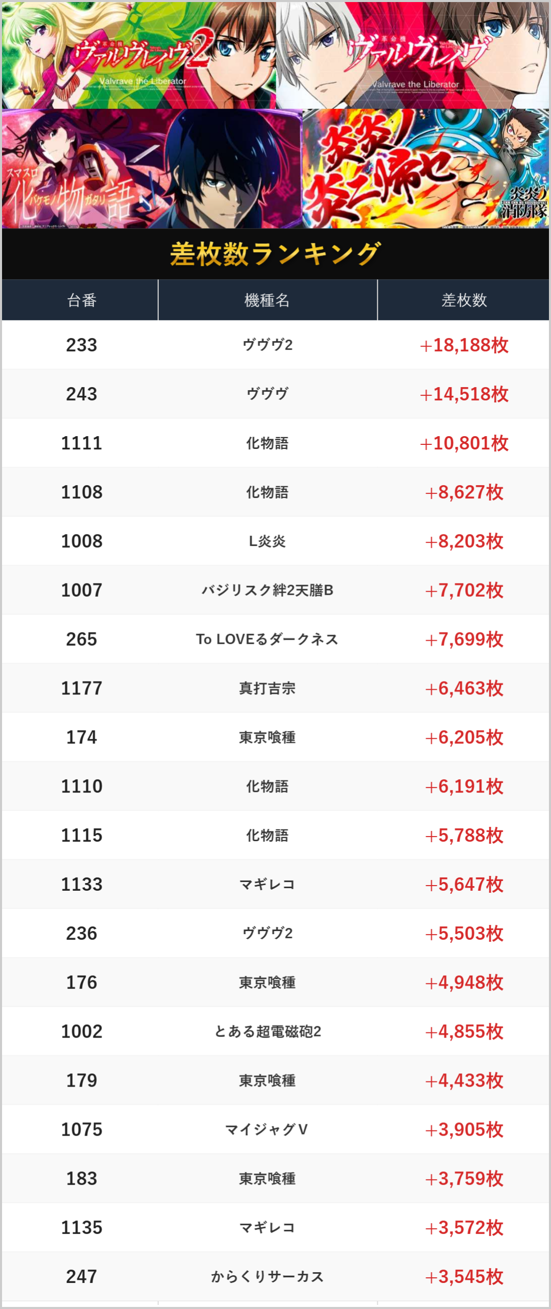 万枚OVERが3台(ヴヴヴ2はコンプ寸前)、TOP20は3,500枚以上!