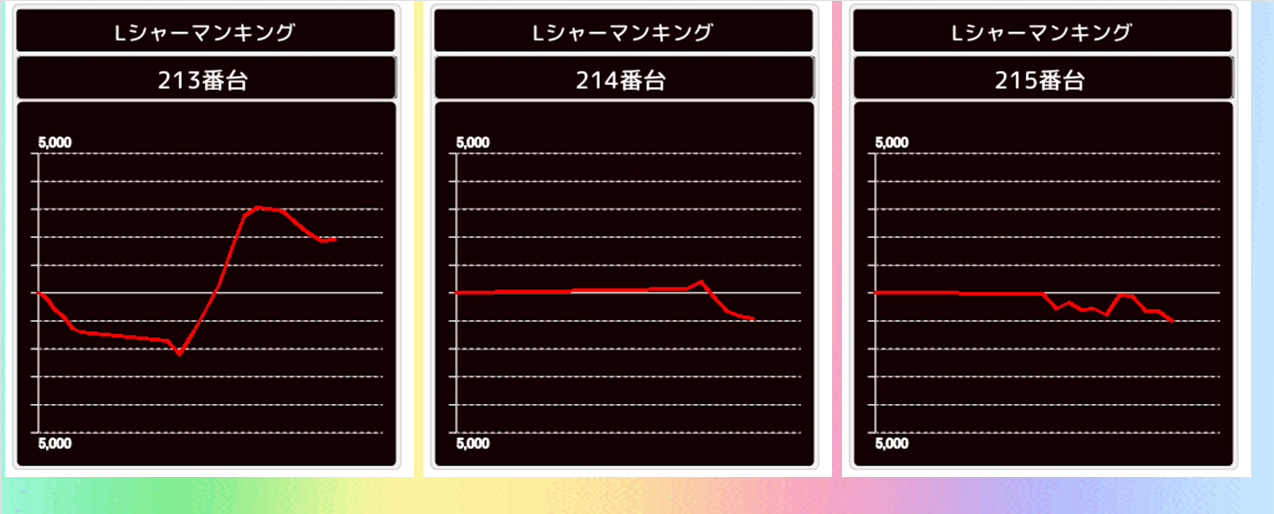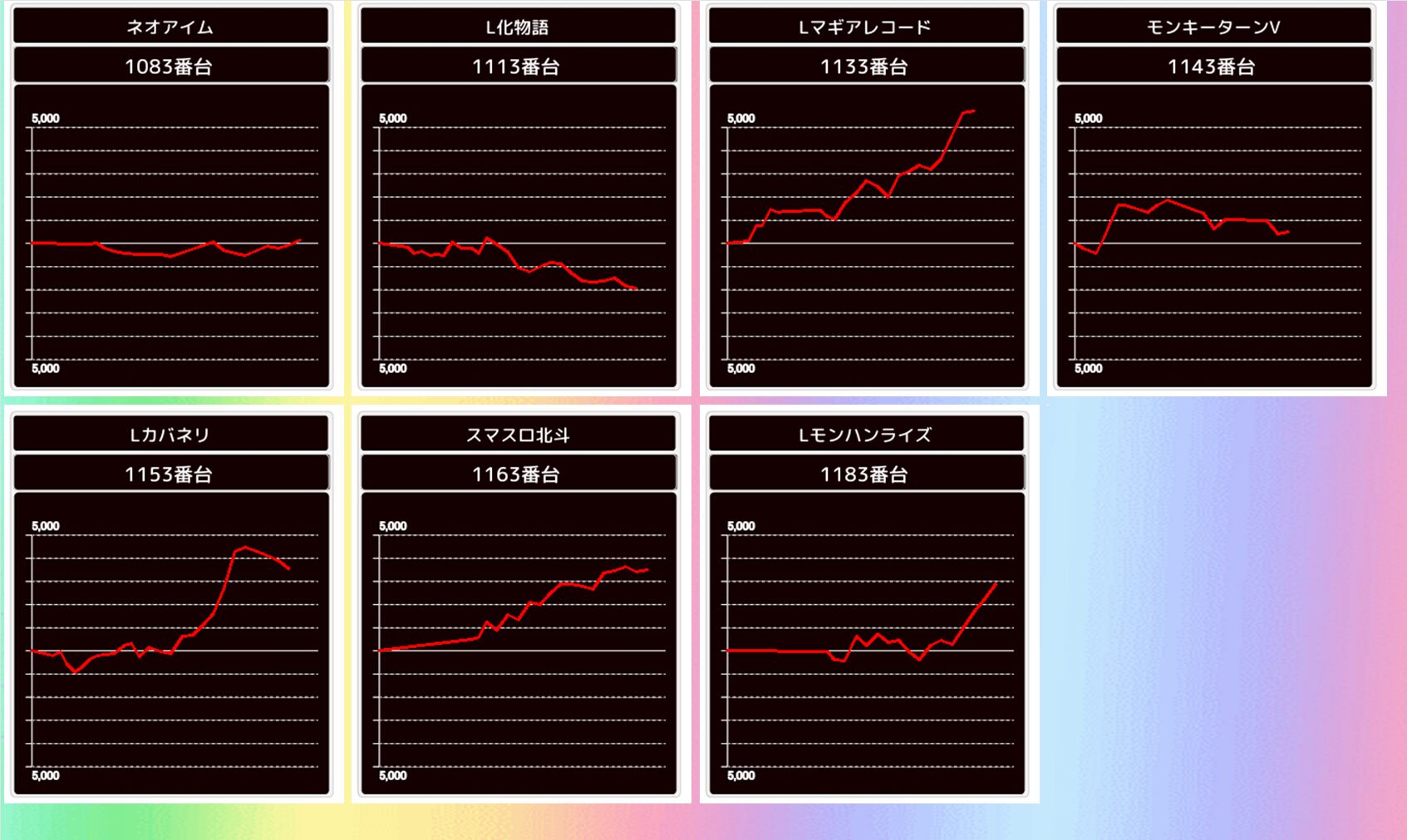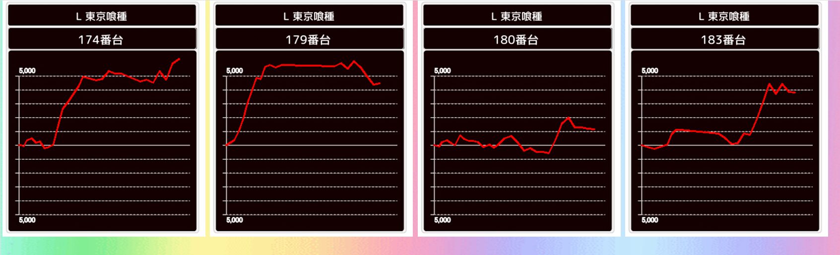 地下フロア末尾:末尾③番台(11台)【平均+3,983枚】