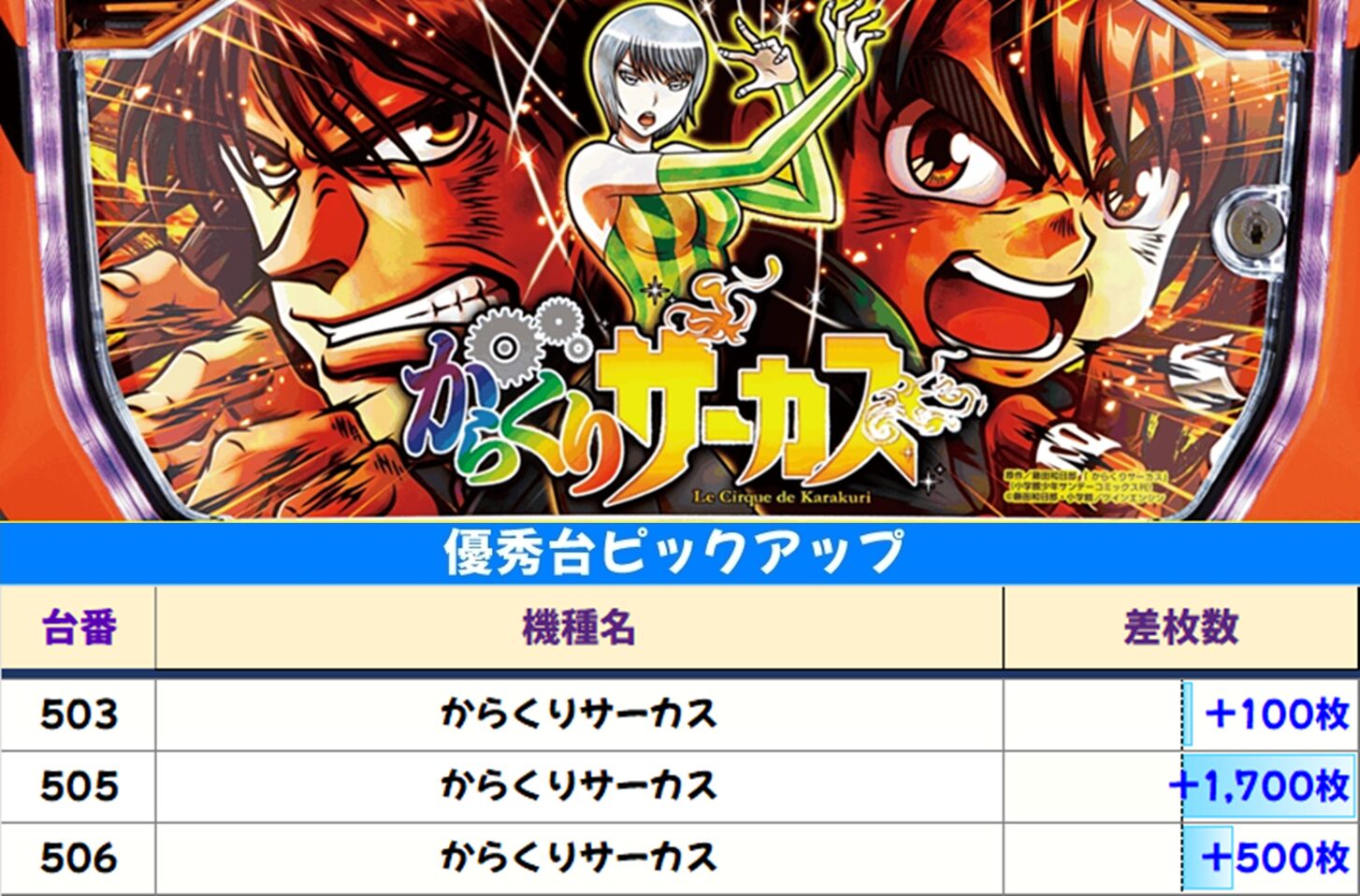 高配分:からくりサーカス(3/4台+) 平均+550枚