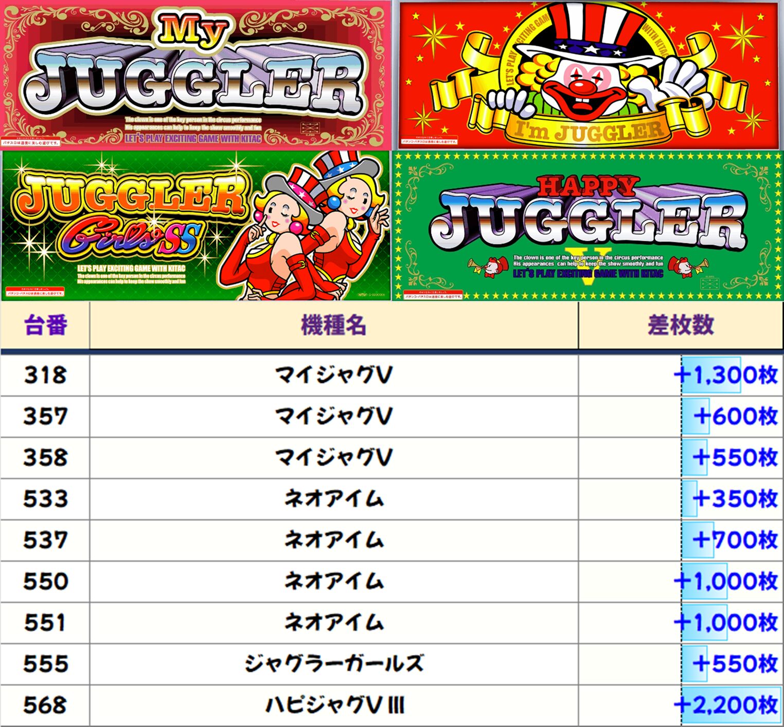 ジャグラーにも多数の優秀台が!