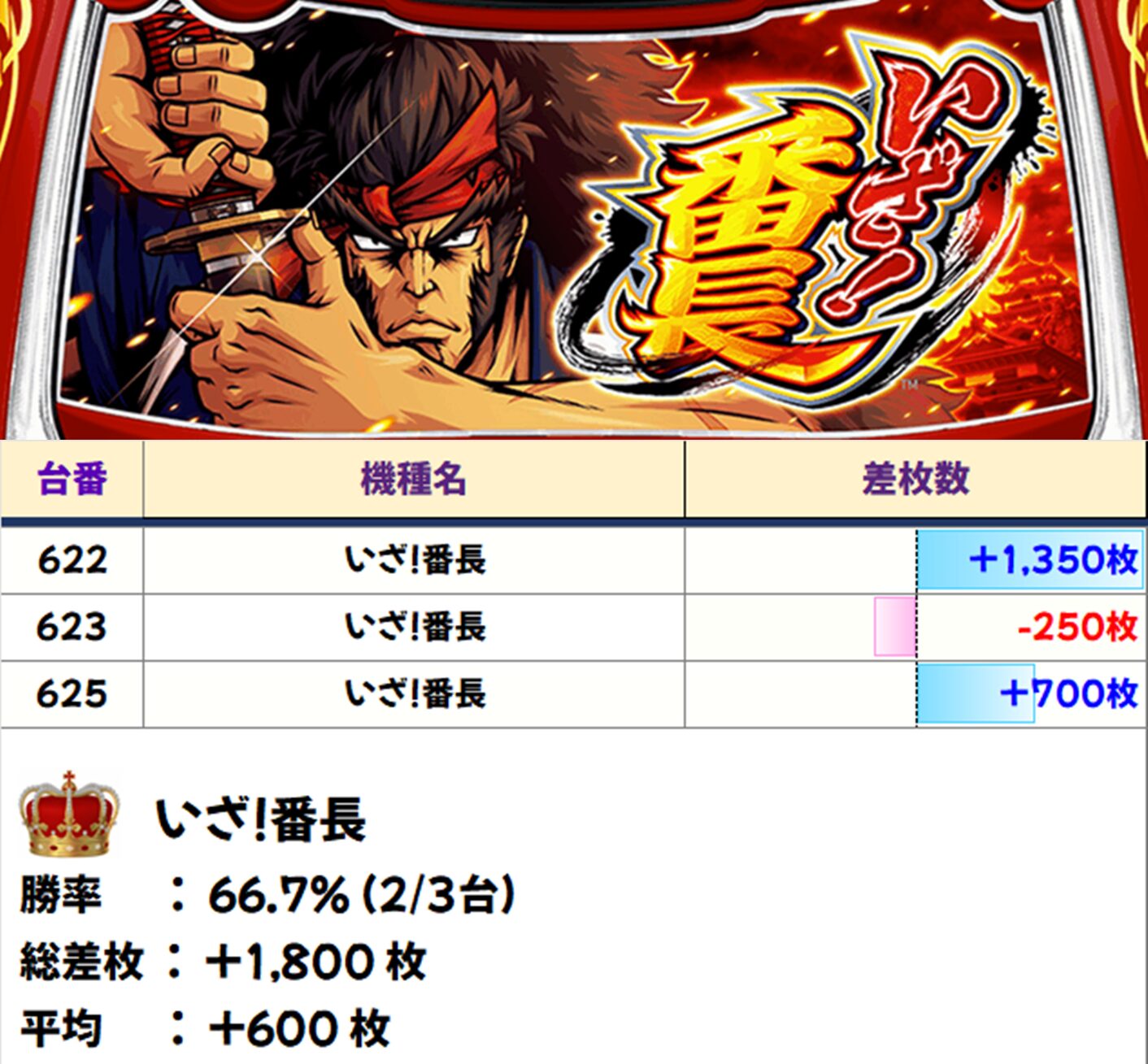 高配分:いざ番長(3台)【平均+600枚】