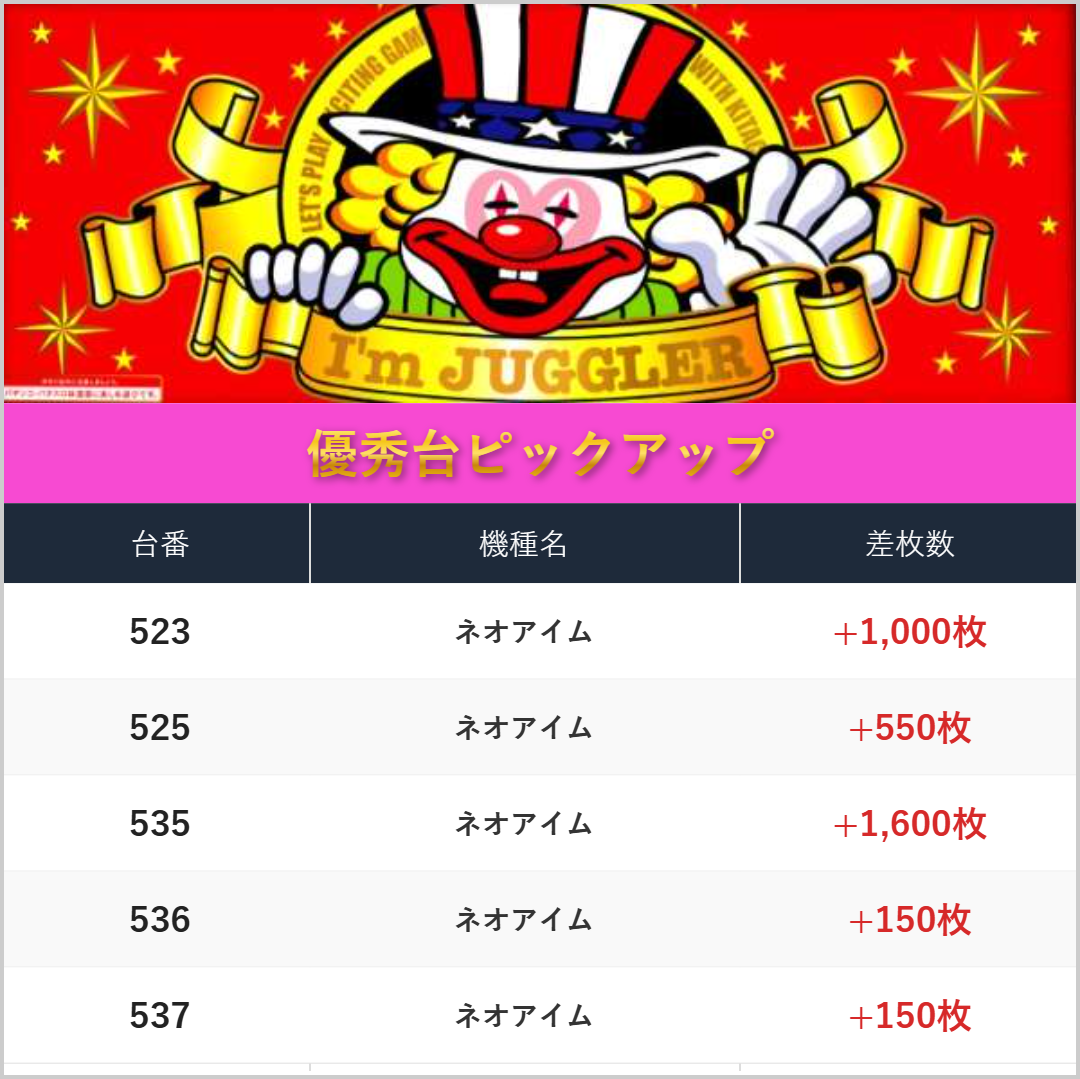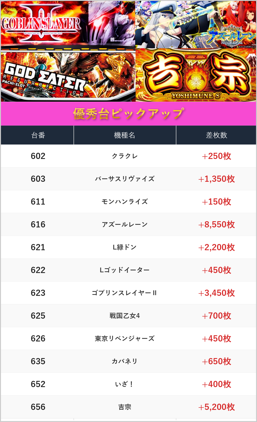 差枚数ランキング!