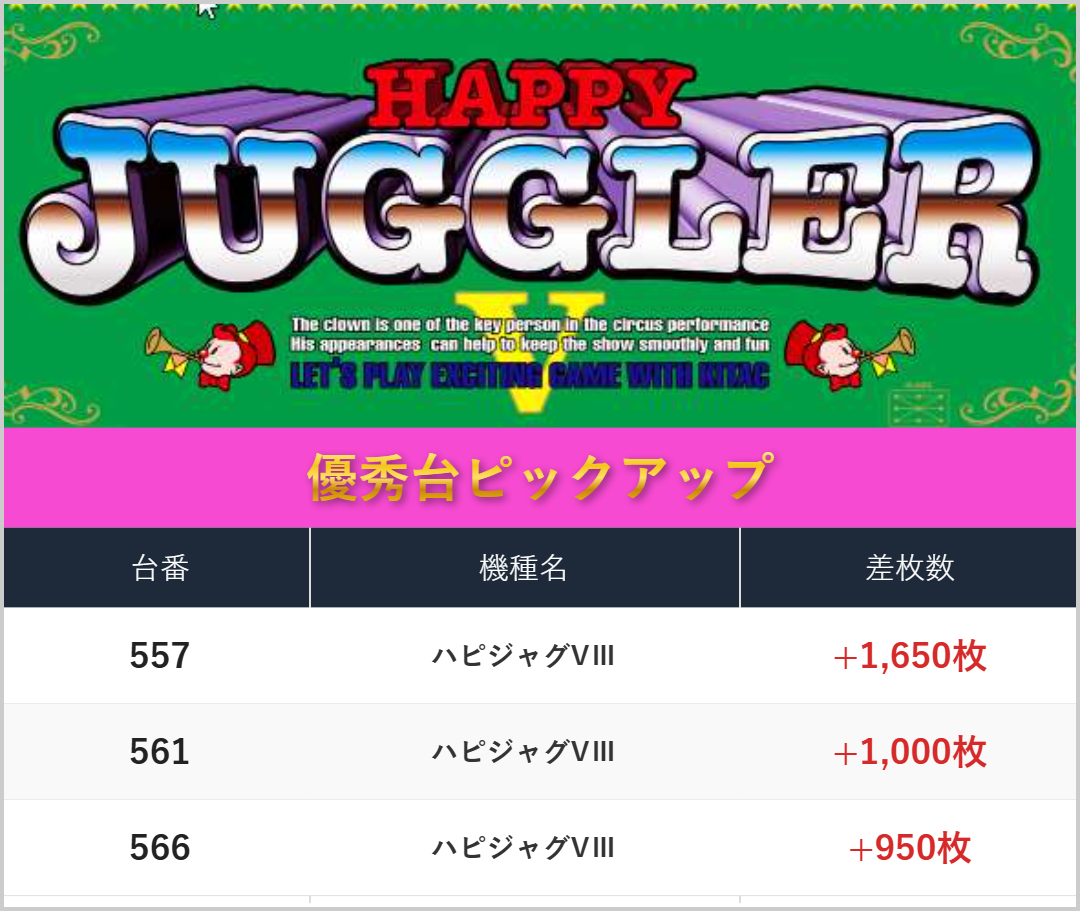 3台以上設置機種から優秀台は多数確認。