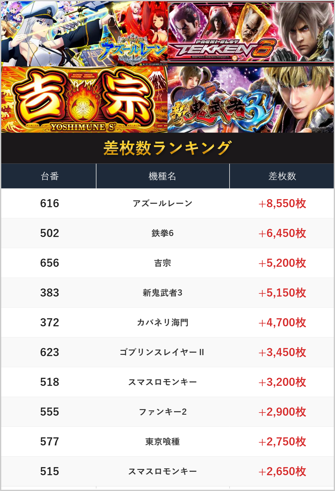 差枚数ランキング
