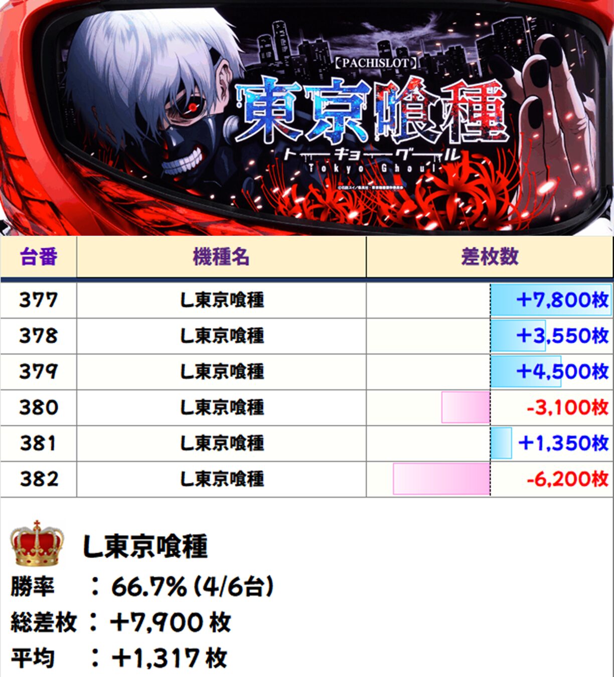【6台並び①】東京喰種(377-382)【平均+1,317枚】