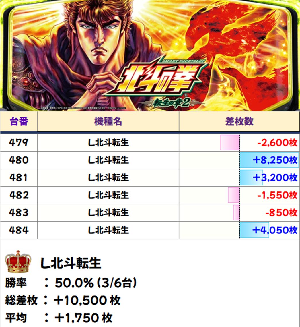【6台並び③】北斗転生2(479-484番台)【平均+1,750枚】