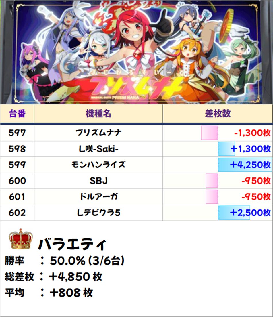 【6台並び⑥】プリズムナナ-デビクラ5(597-602番台)【平均+808枚】