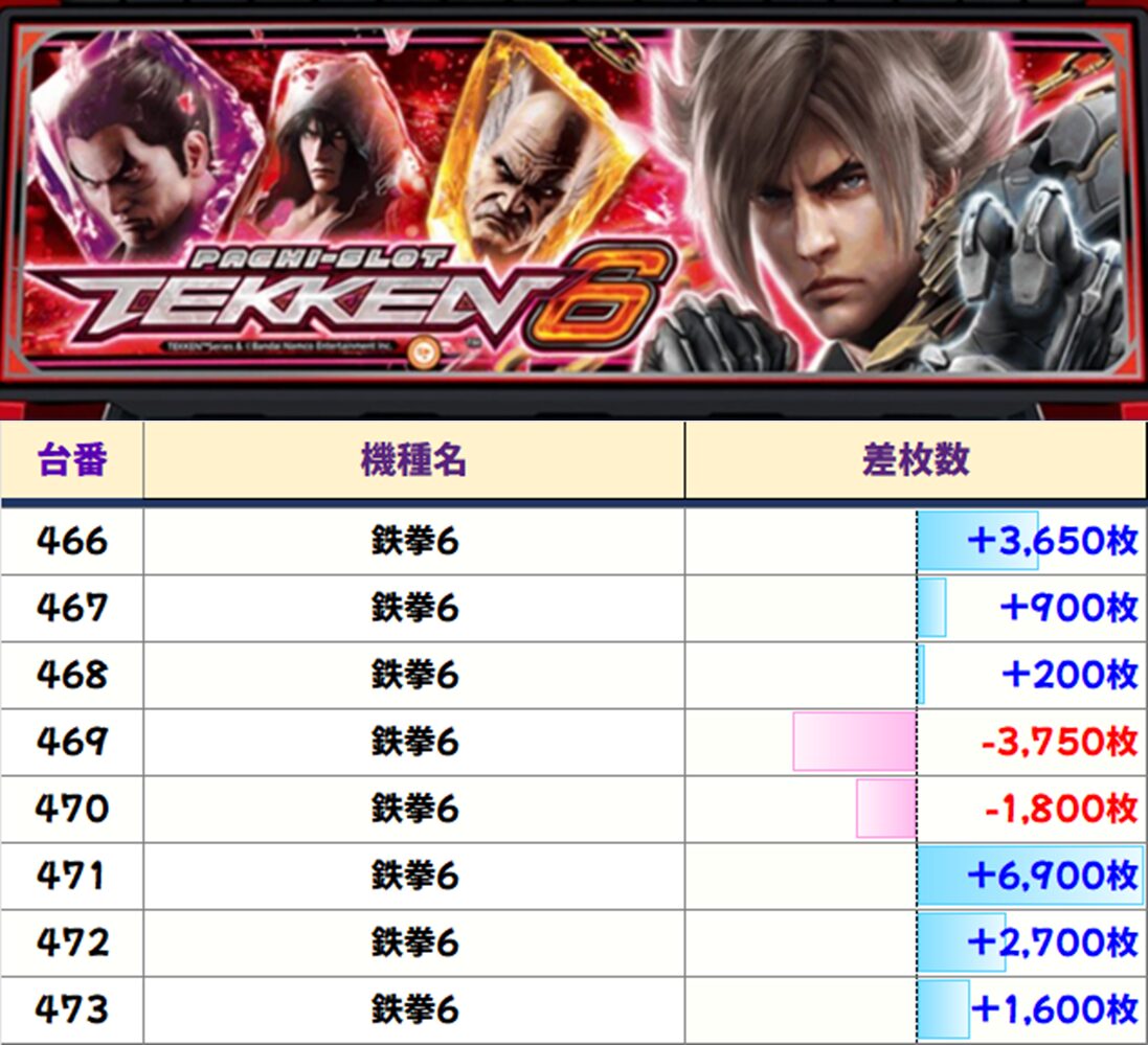 【8台並び】鉄拳6(466-473番台)【平均+1,300枚】