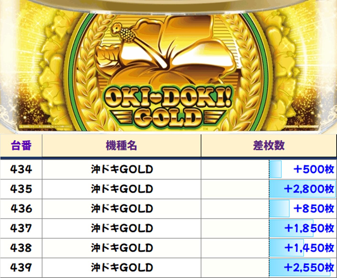 【6台並び③】沖ドキGOLD(434-439番台)【平均+1,667枚】