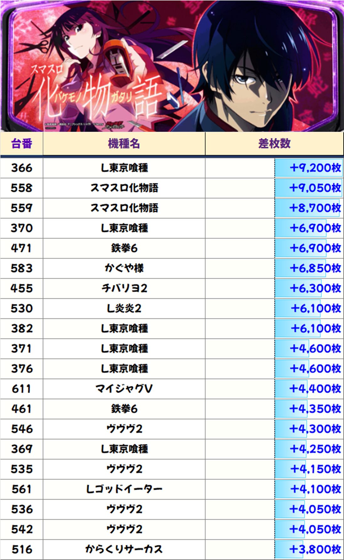 差枚数ランキング!