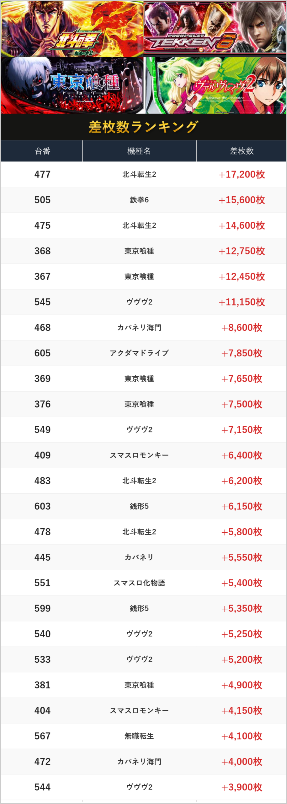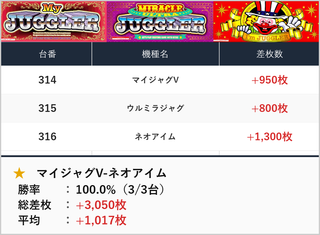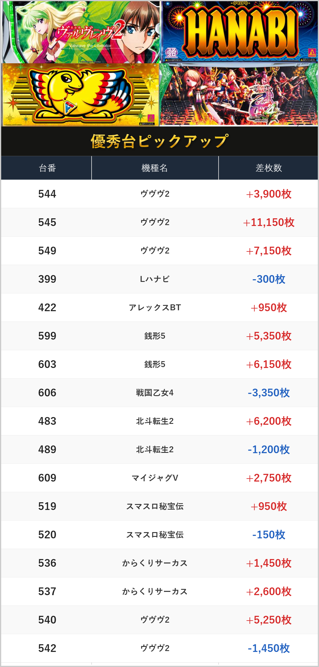 いずれも差枚がしっかりついていて質の高い優秀な結果ですね!