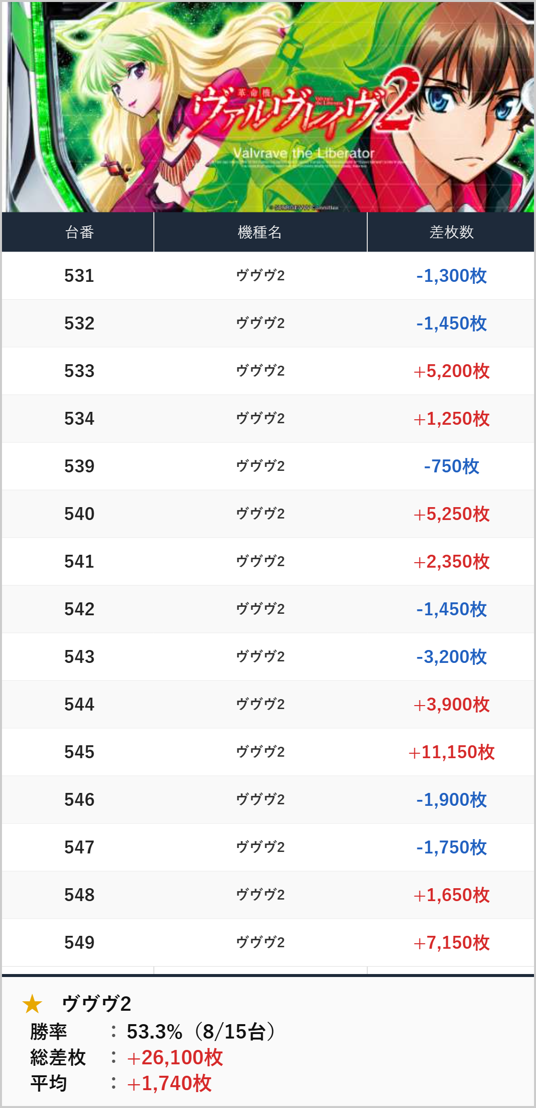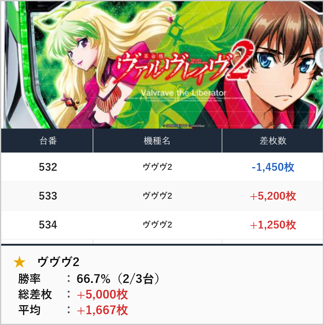3台並び⑤:ヴヴヴ2(532-534番台)【平均+1,667枚】