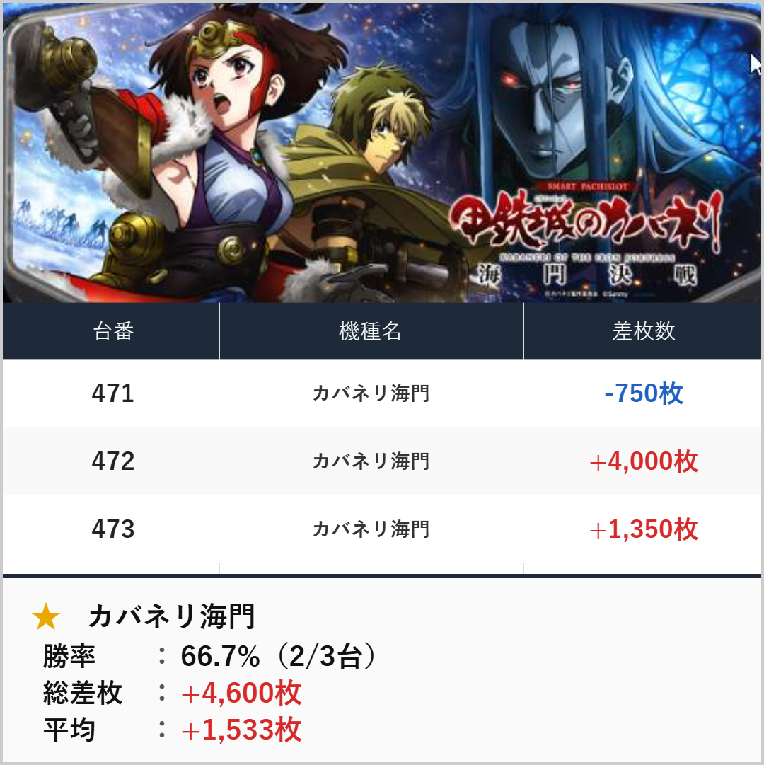 3台並び①:カバネリ海門(471-473番台)【平均+1,533枚】