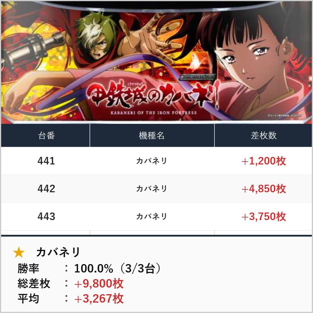 3台並び:カバネリ(441-443番台)【平均+3,267枚】