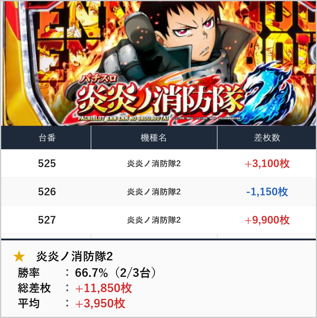 3台並び:炎炎ノ消防隊2(525-527番台)【平均+3,950枚】