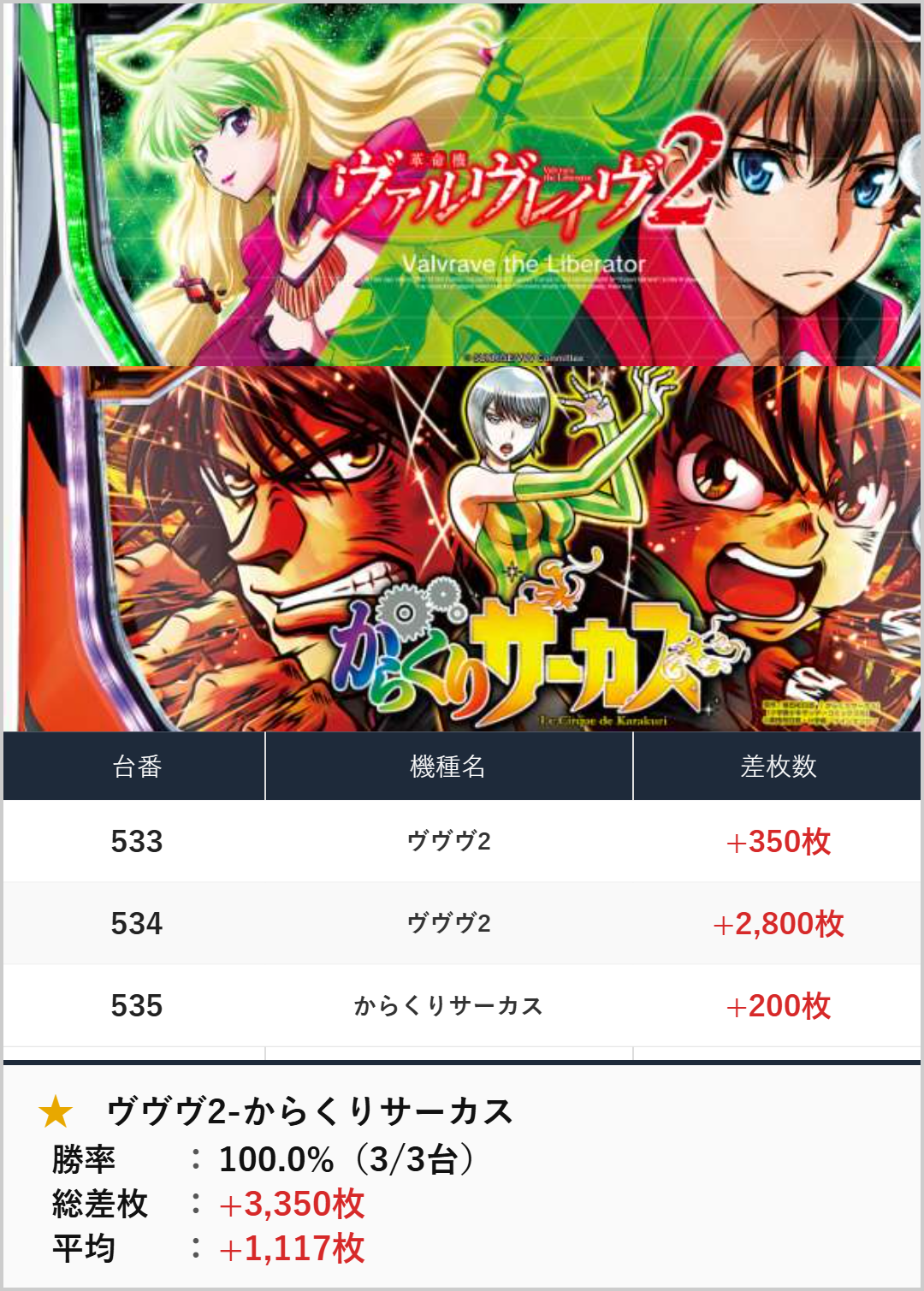 3台並び:ヴヴヴ2-からくりサーカス(533-535番台)【平均+1,117枚】