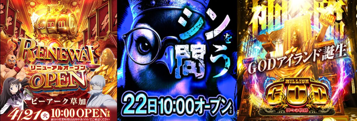 さらに、増台エリアには“GODアイランド”が誕生し、スロット増台箇所はすべてGODシリーズで構成、合計20台規模とインパクト抜群の仕上がりとなっている。