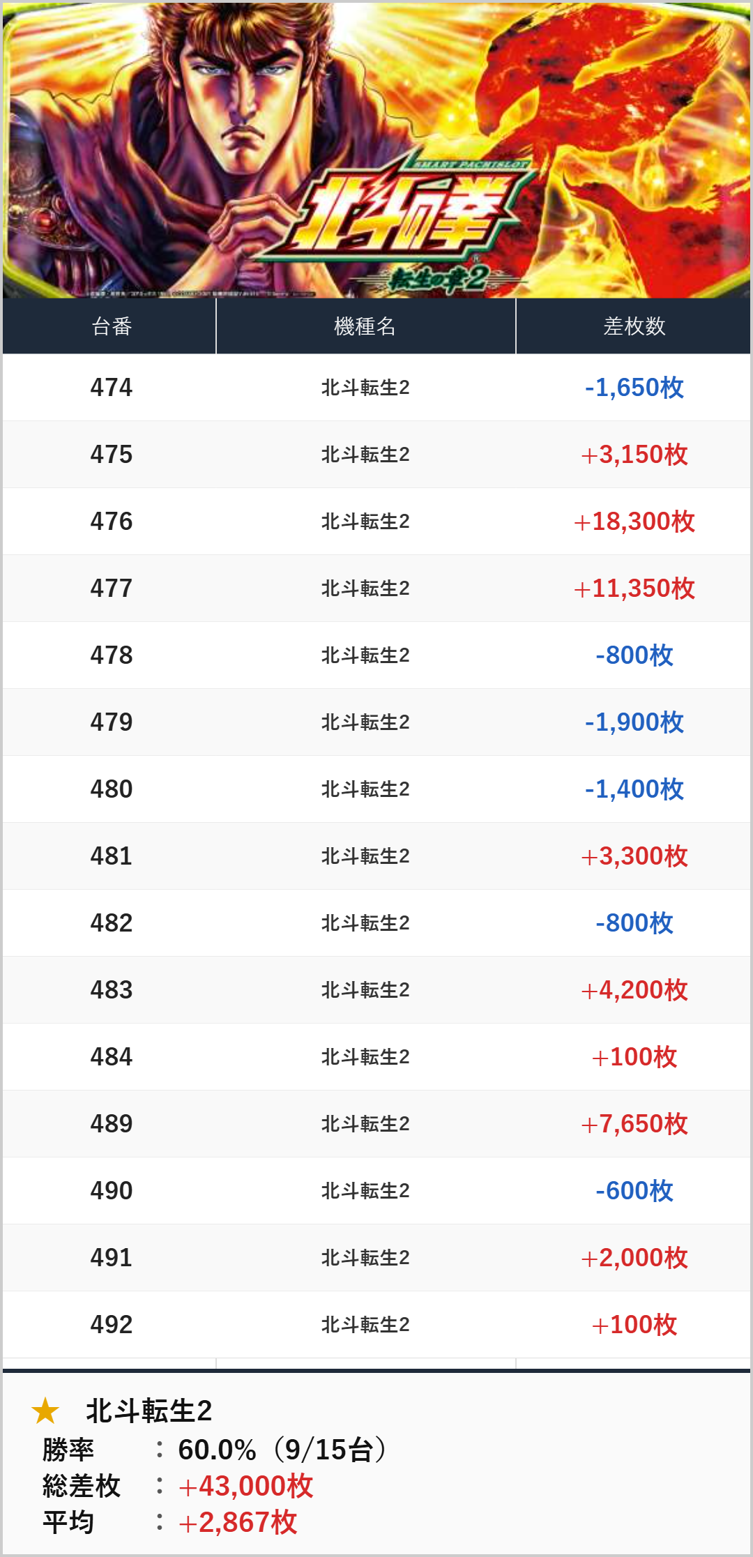 3台並び:北斗転生2(476-478番台)【平均+9,617枚】