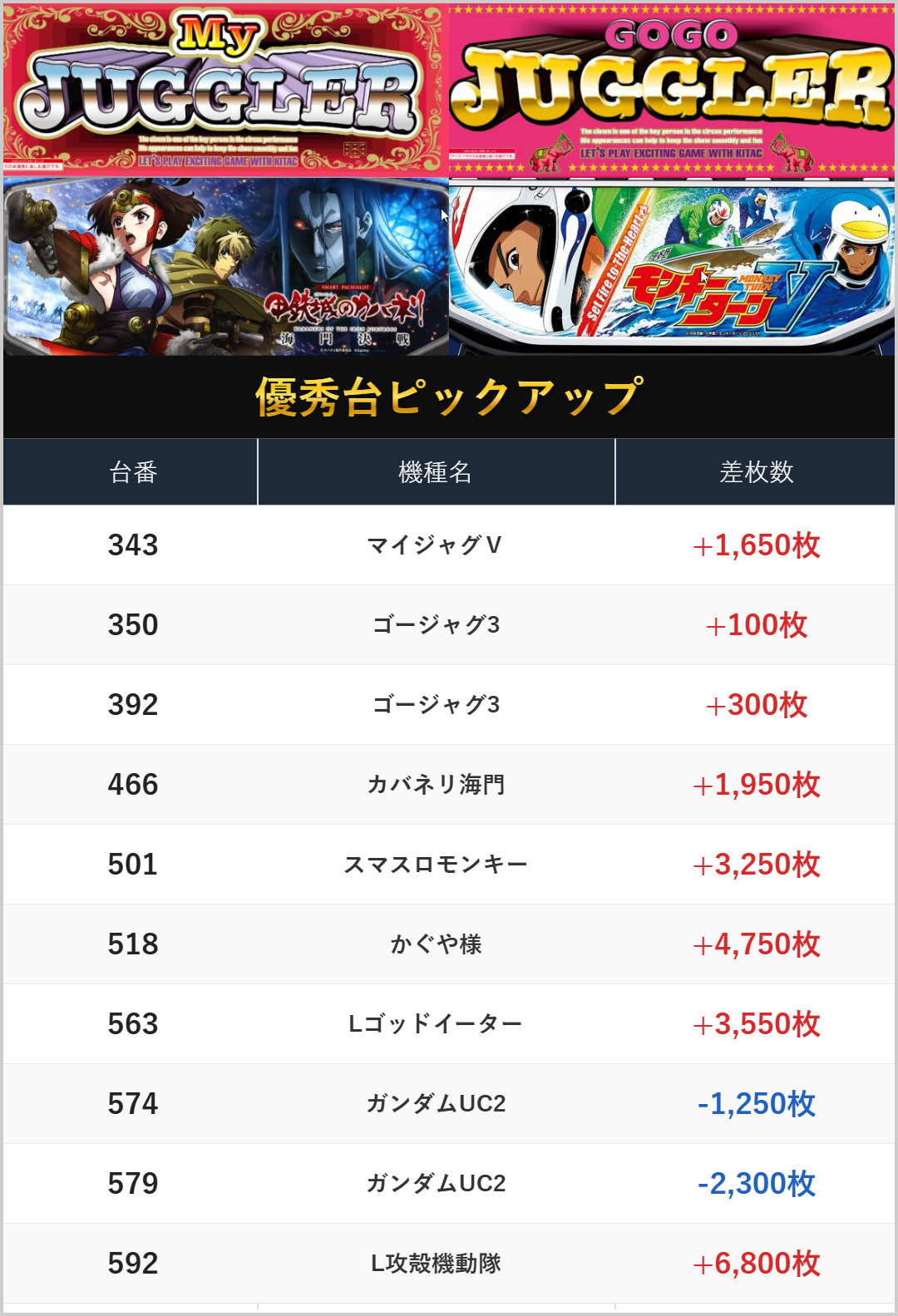 差枚数ランキング!