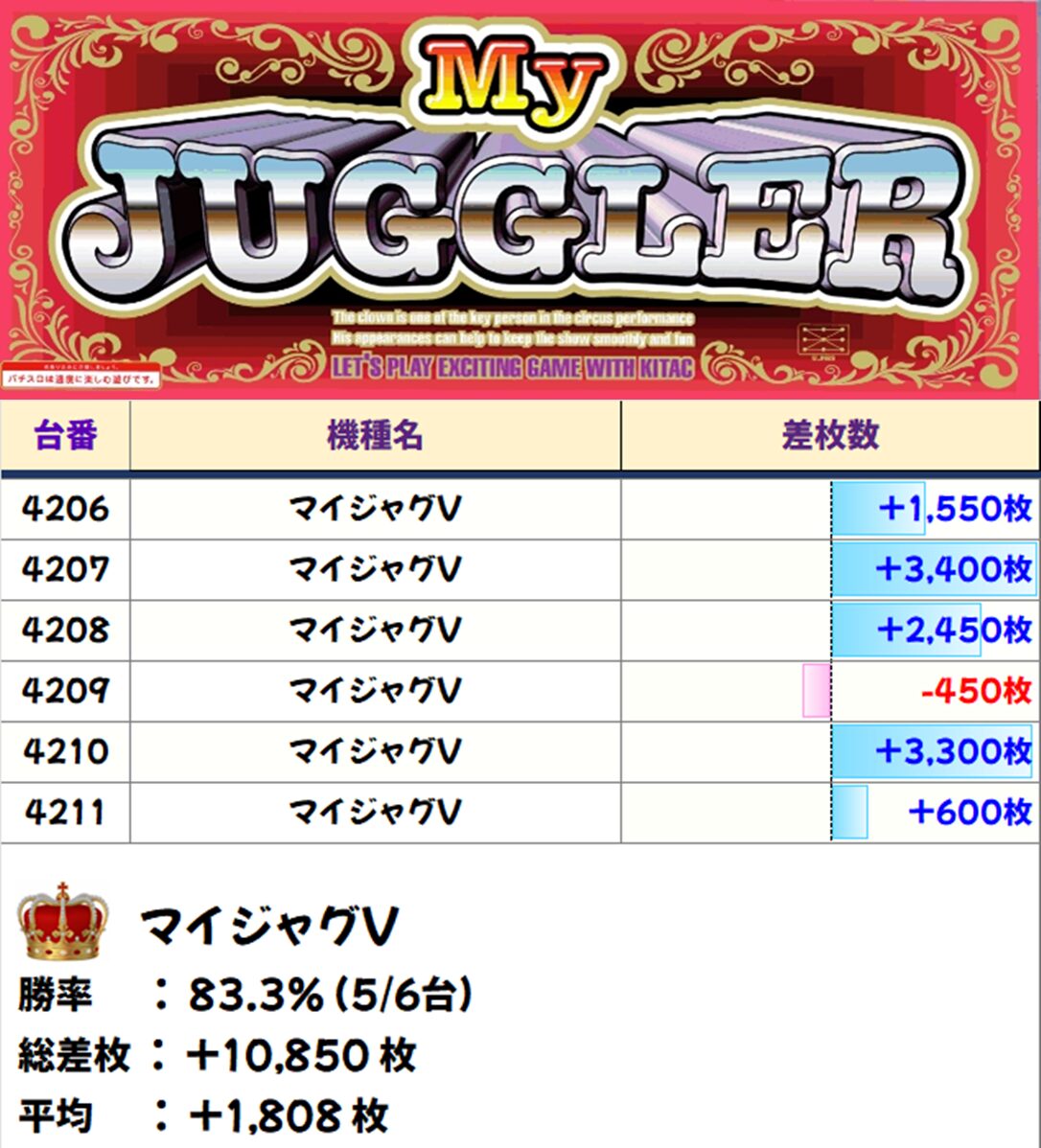 6台中5台プラス&平均3,625枚と好結果を叩き出していますね!