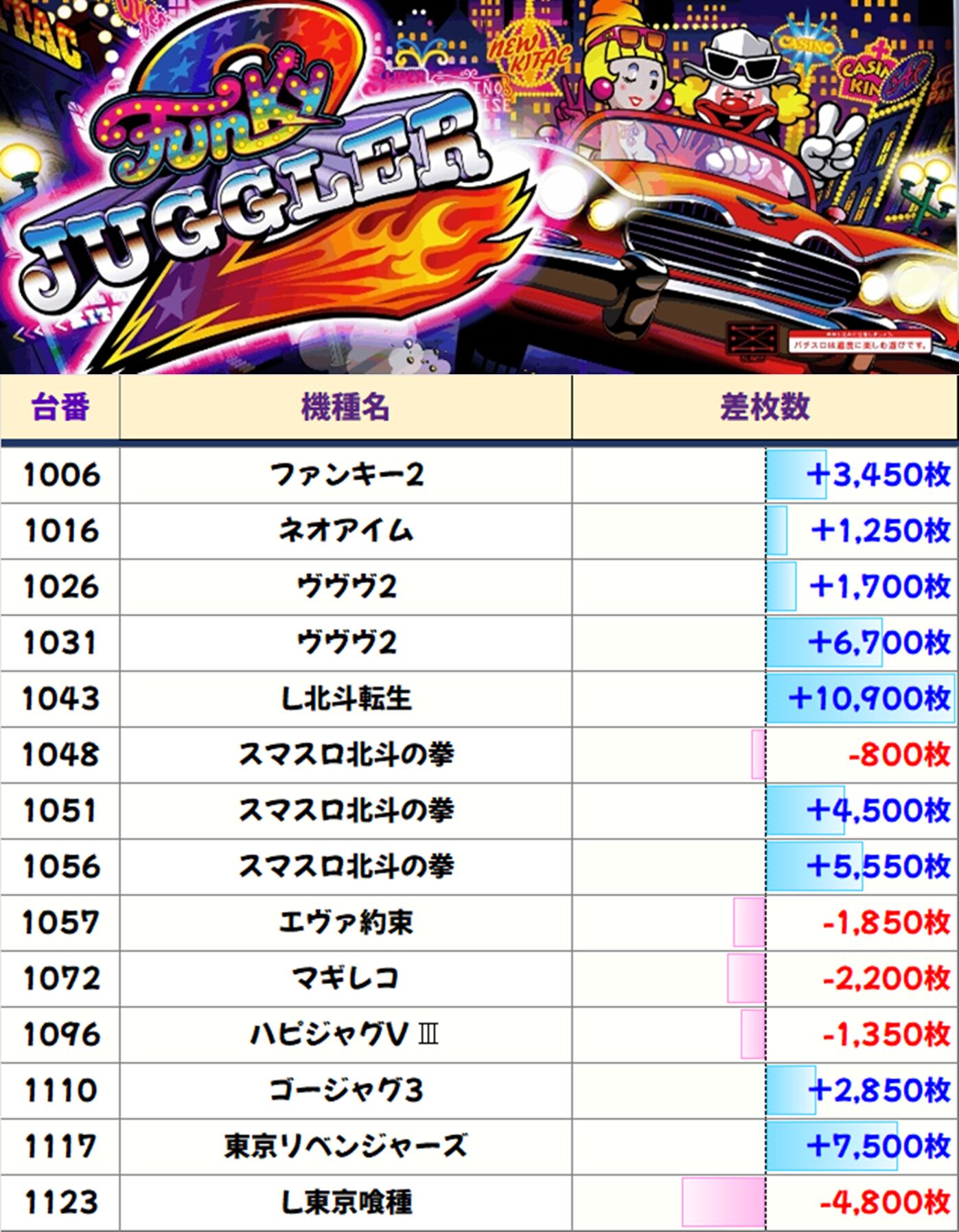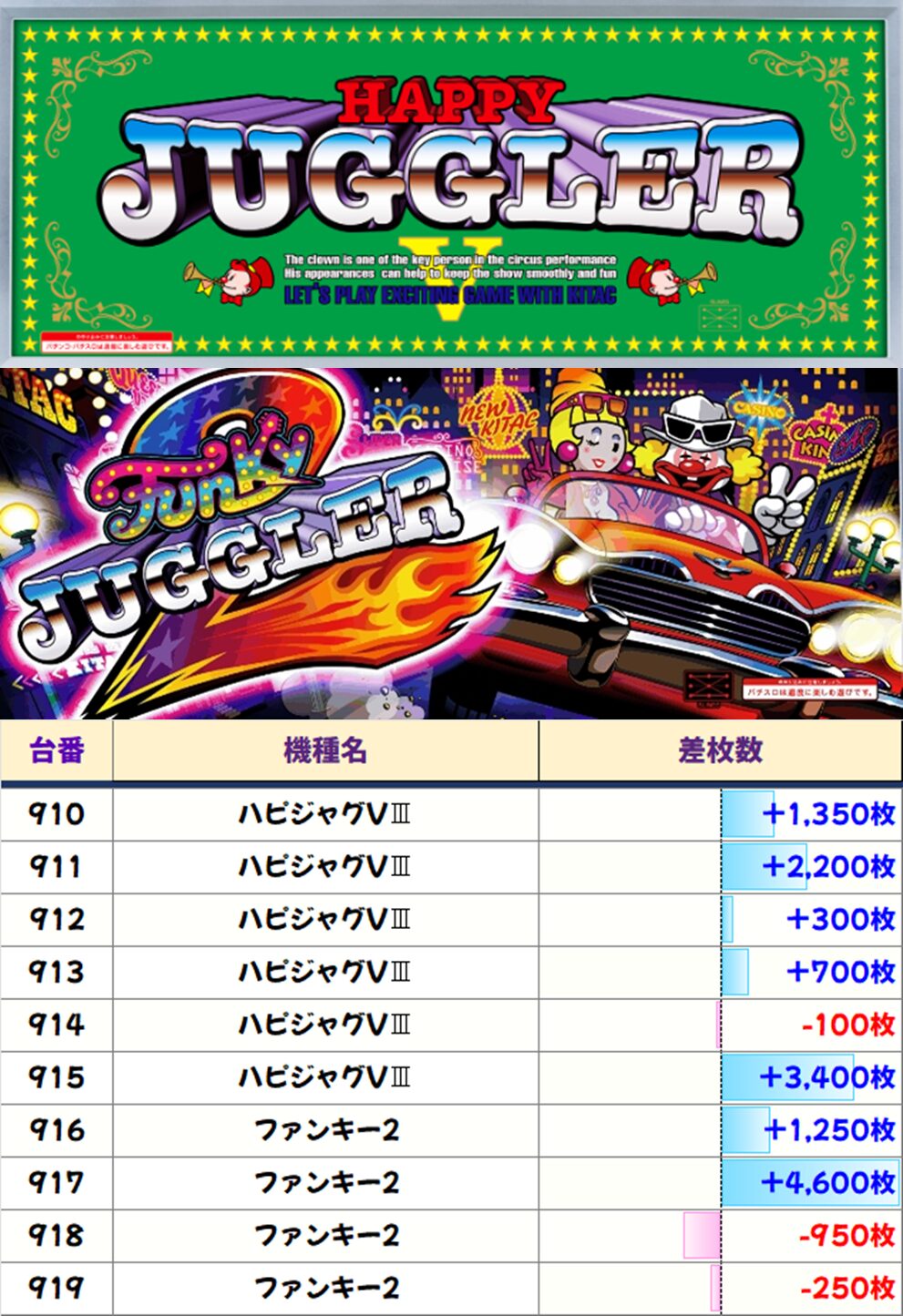 スロ全台の平均差枚は+203枚としっかり盛り上がっていましたね!