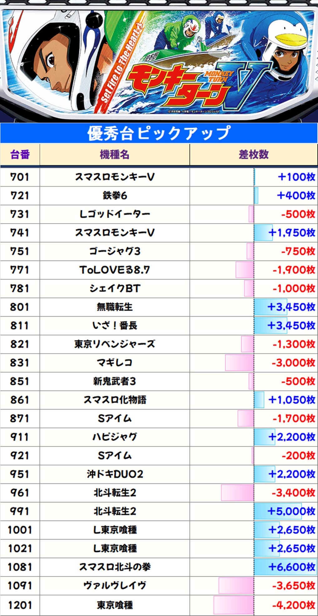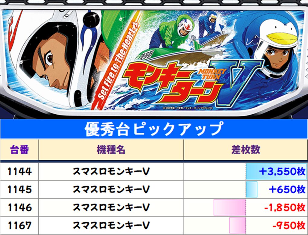 その他、各列ごとに単品優秀台も複数出現していたぞ!