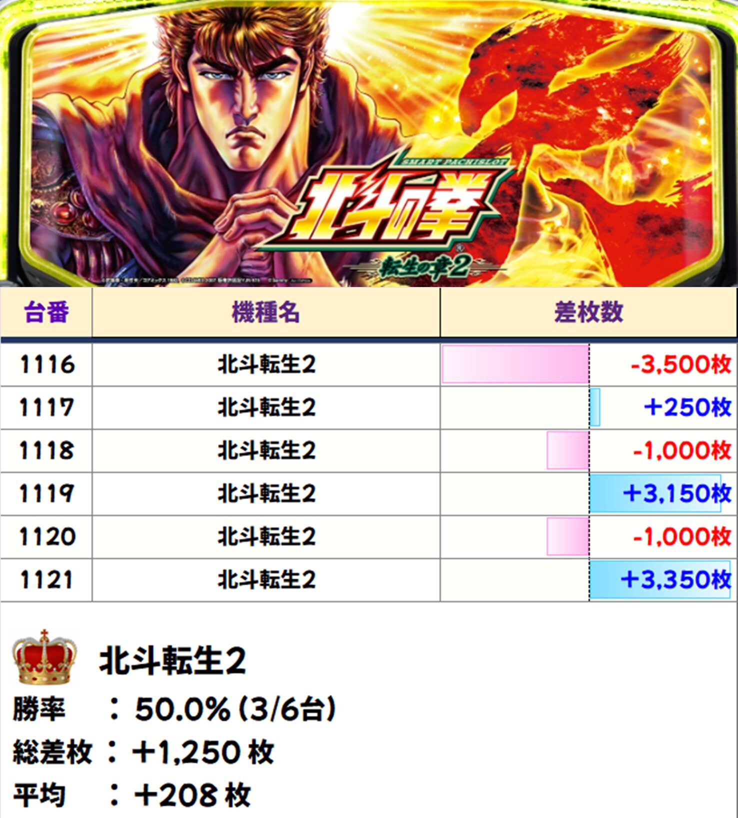 【全台系】北斗転生2(6台)【平均+208枚】