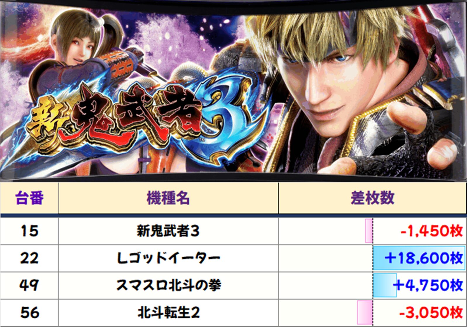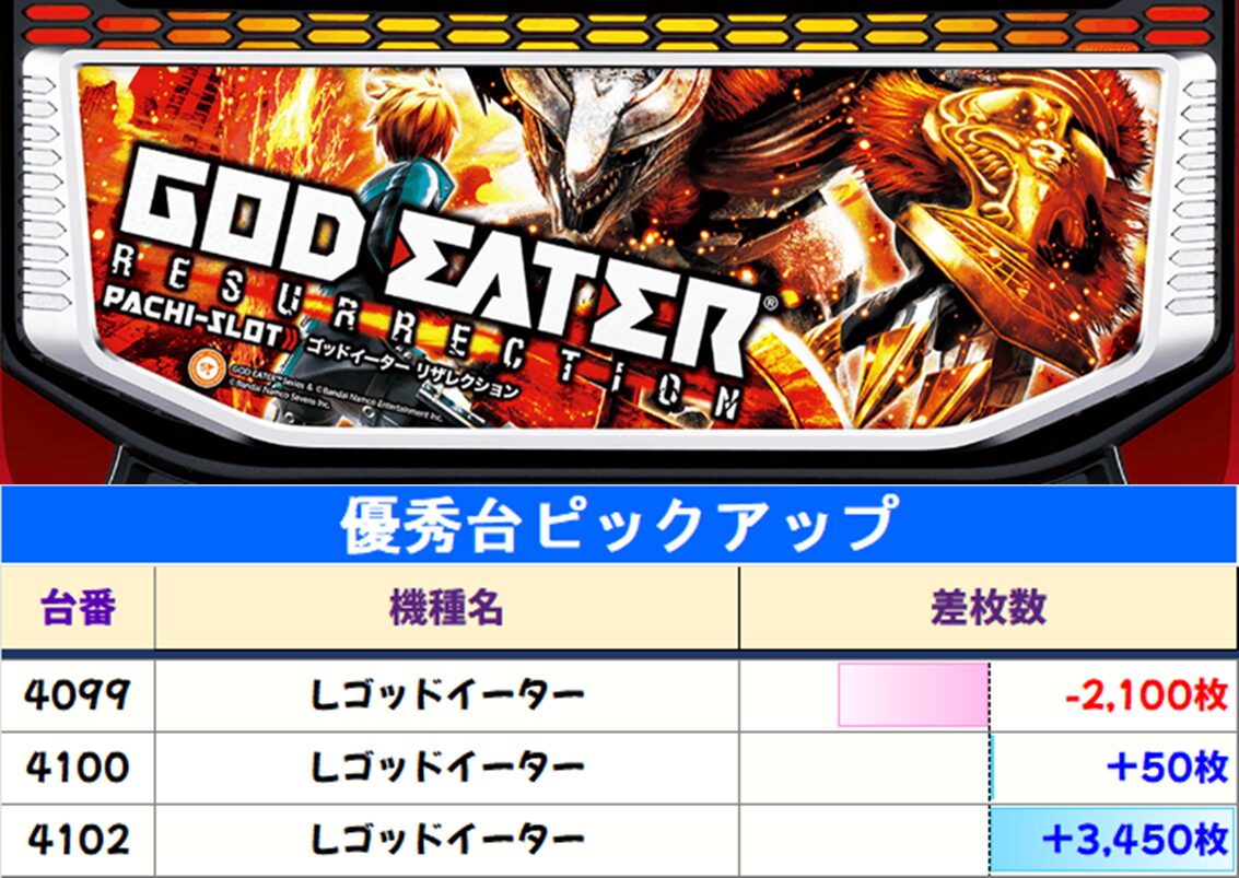 他、全台系も【北斗転生2・スマスロ化物語・ゴッドイーター】の3機種確認。