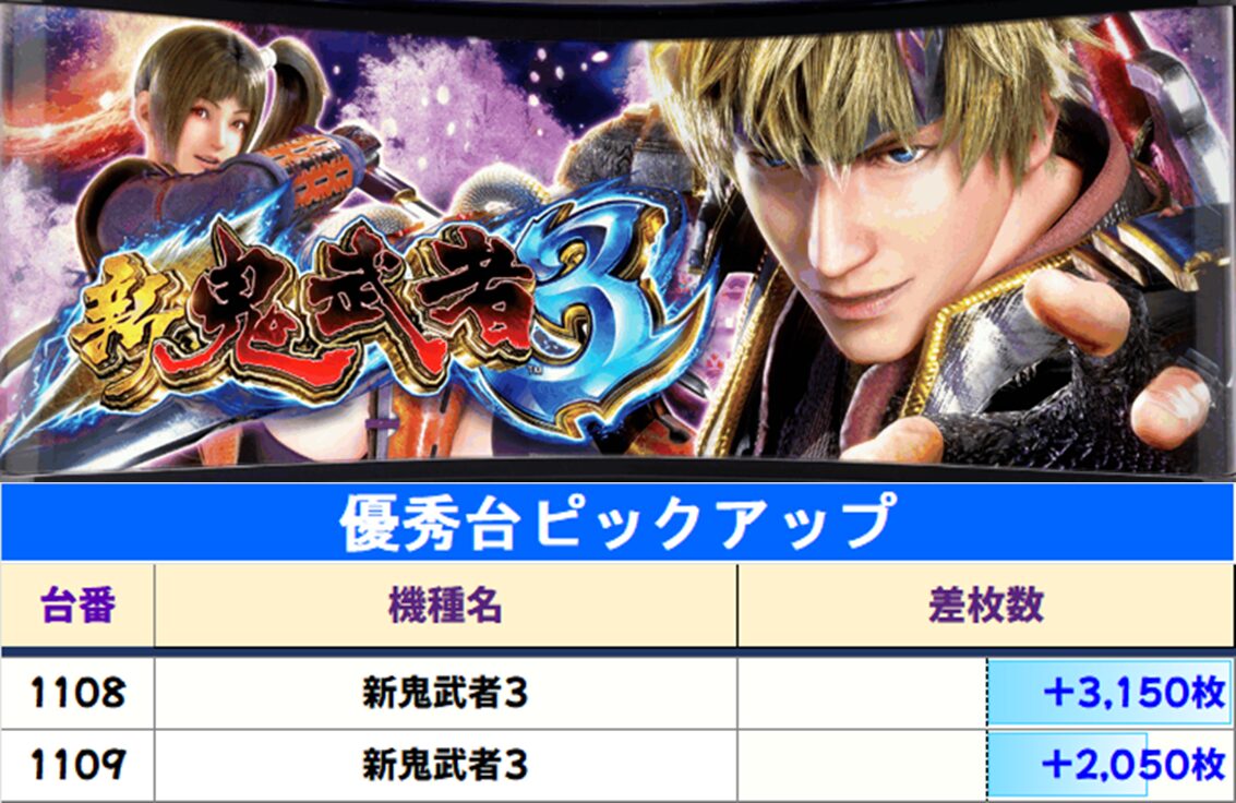 【新鬼武者3】と【マイジャグ】が1/3の仕掛け。