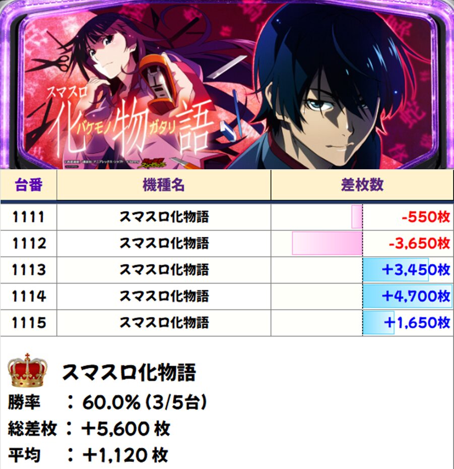 【全台系】スマスロ化物語(5台)【平均+1,120枚】