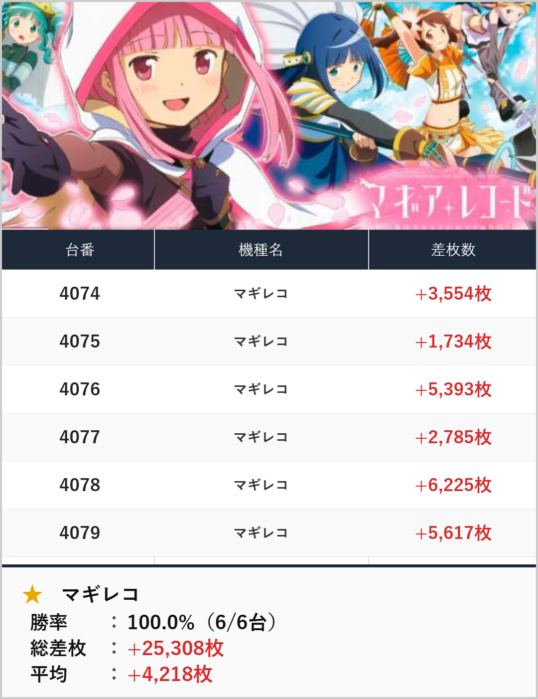 【全台系🌈】:マギレコ(6台)【平均+4,218枚】