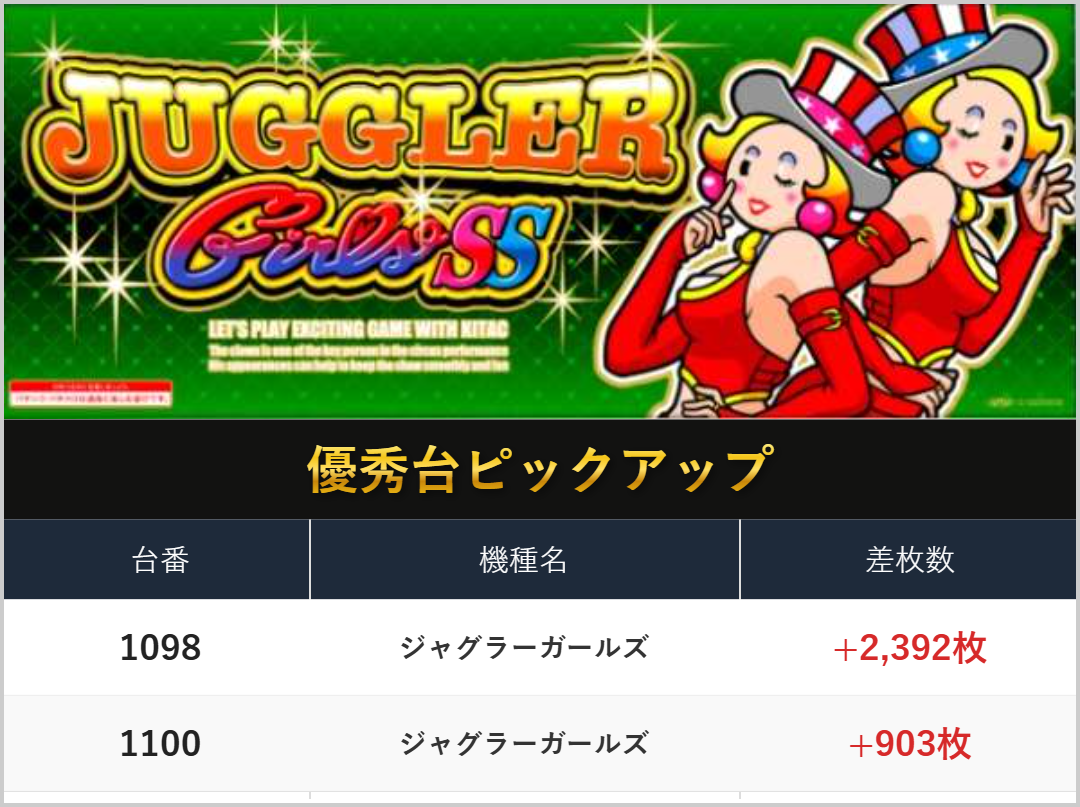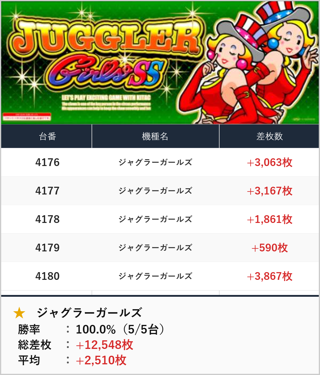 【全台系🌈】:ジャグラーガールズ(5台)【平均+2,510枚】