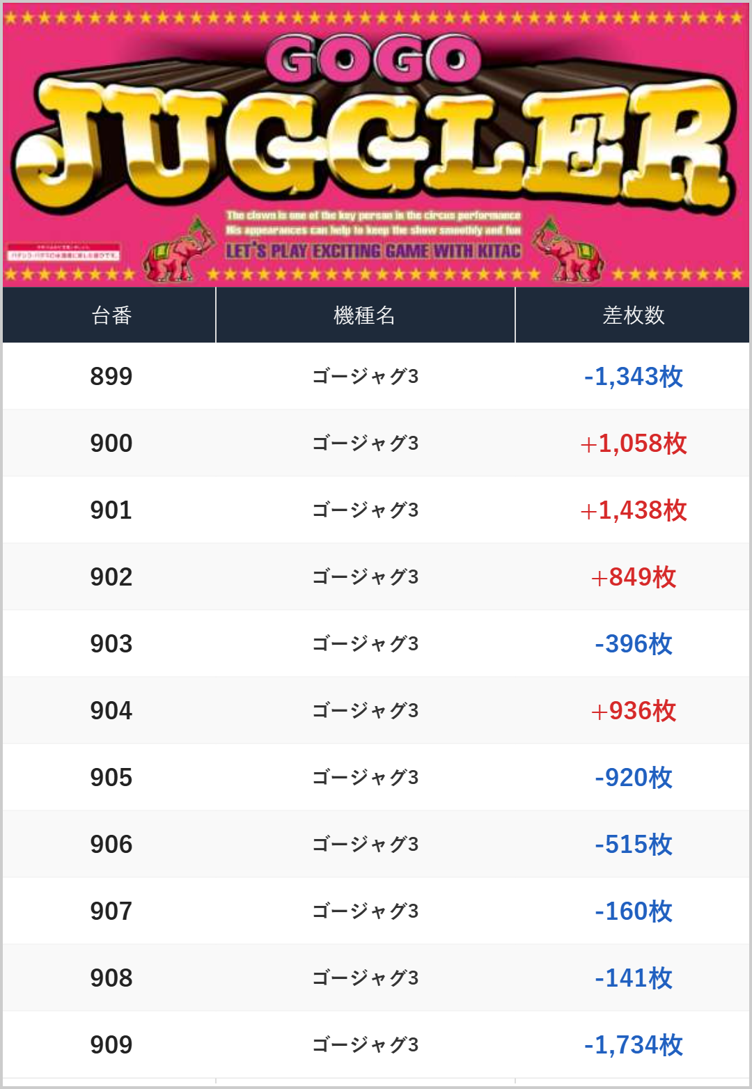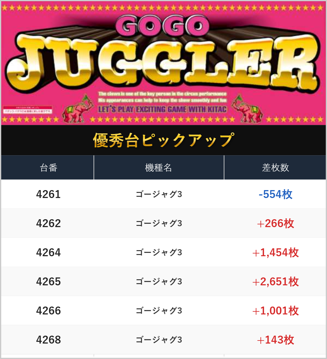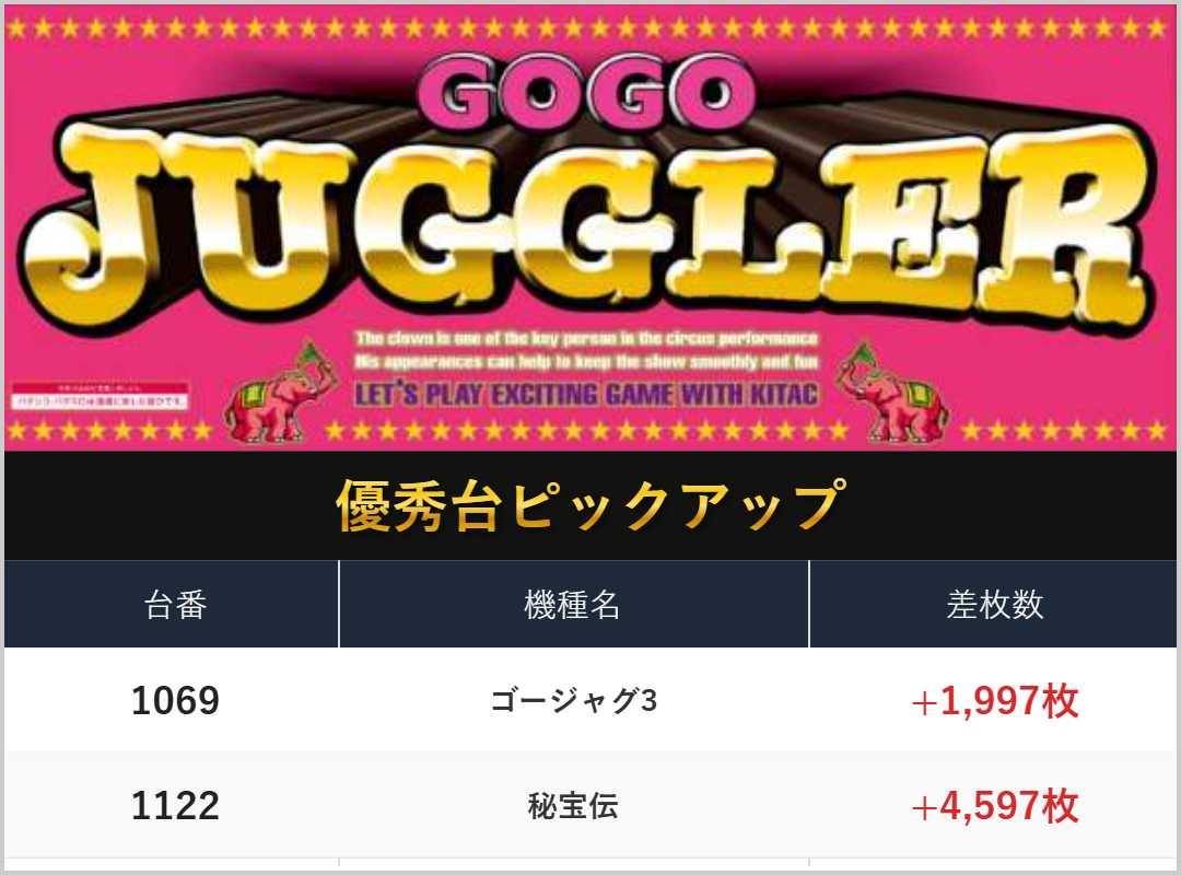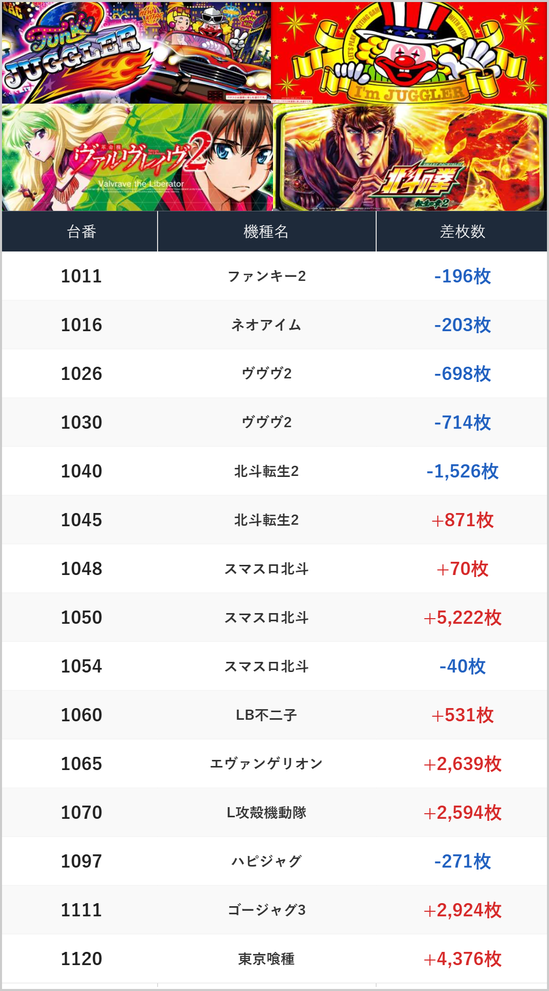 16台中15台プラスと惜しくも1台届かずでしたが、平均+3,892枚と超優秀な結果に!